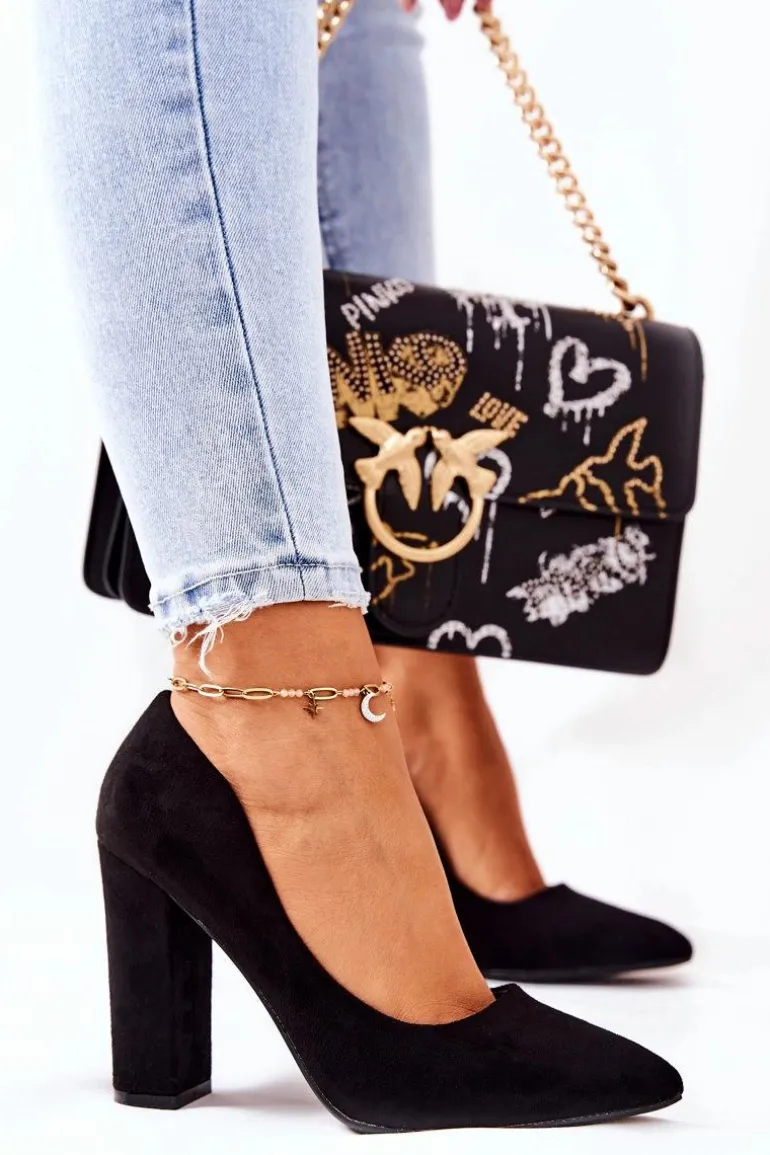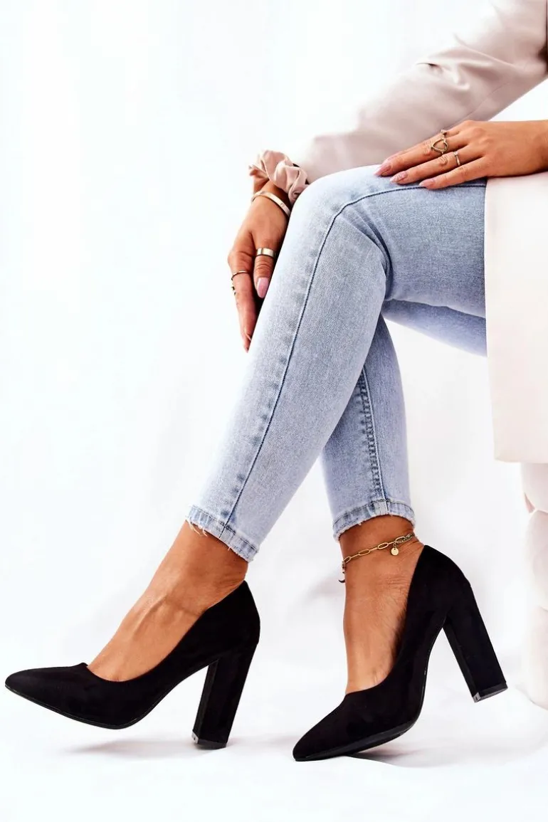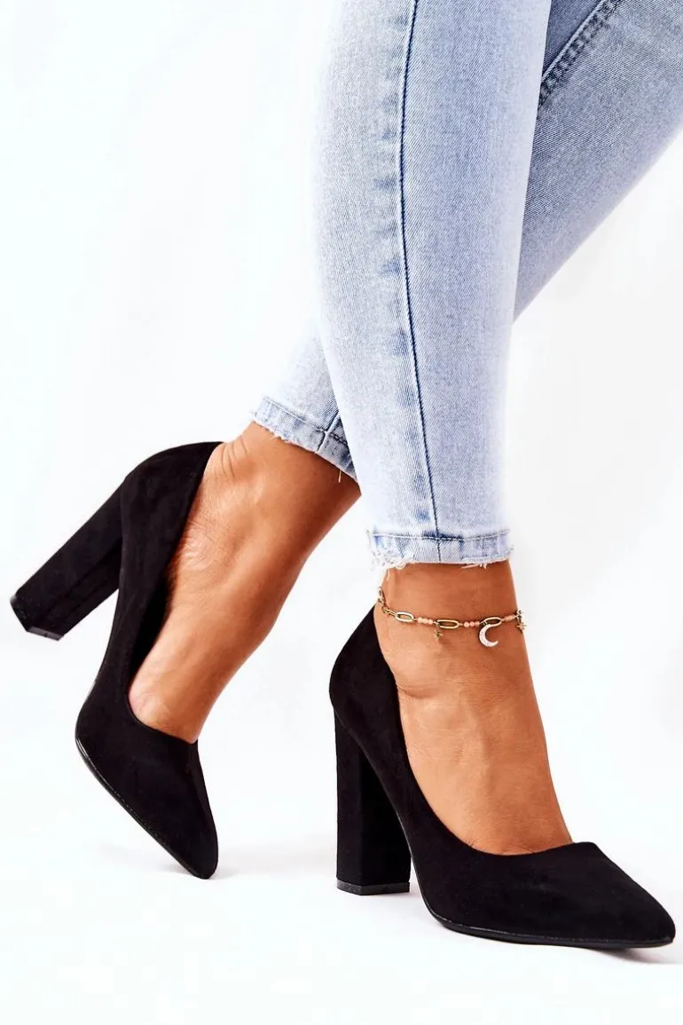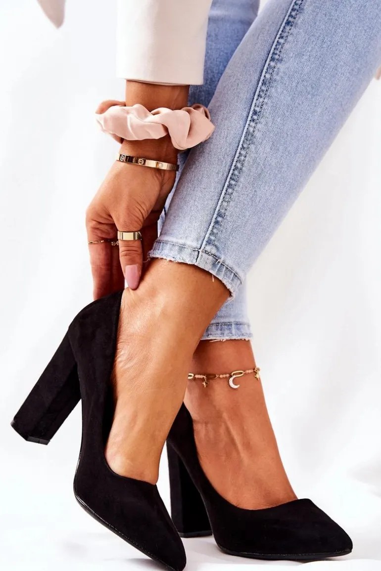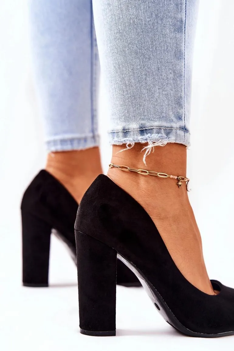 Zamszowe Czółenka Na Słupku Czarne Valoris
