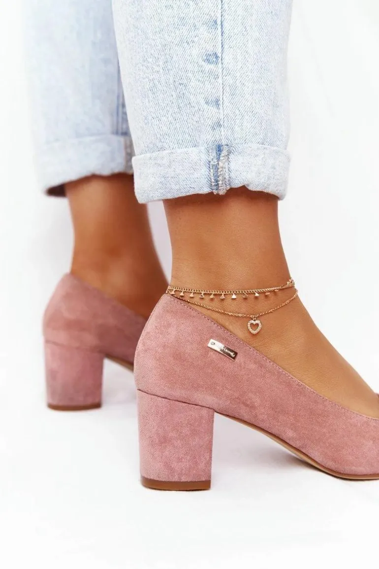 Zamszowe Czółenka Na Słupku Sergio Leone PB178 Różowe
