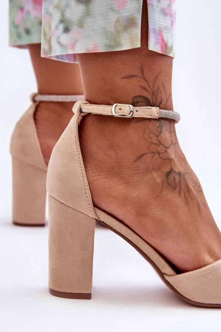 Zamszowe Czółenka Z Cyrkoniami Beżowe Diamond