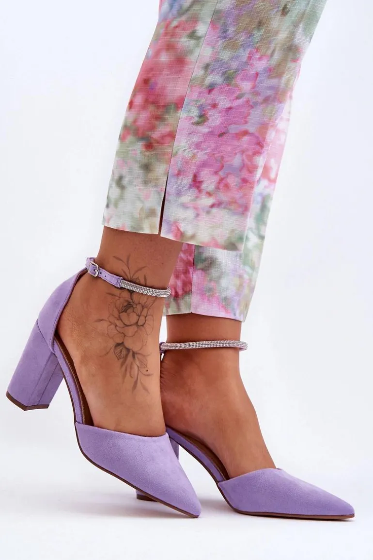 Zamszowe Czółenka Z Cyrkoniami Fioletowe Diamond