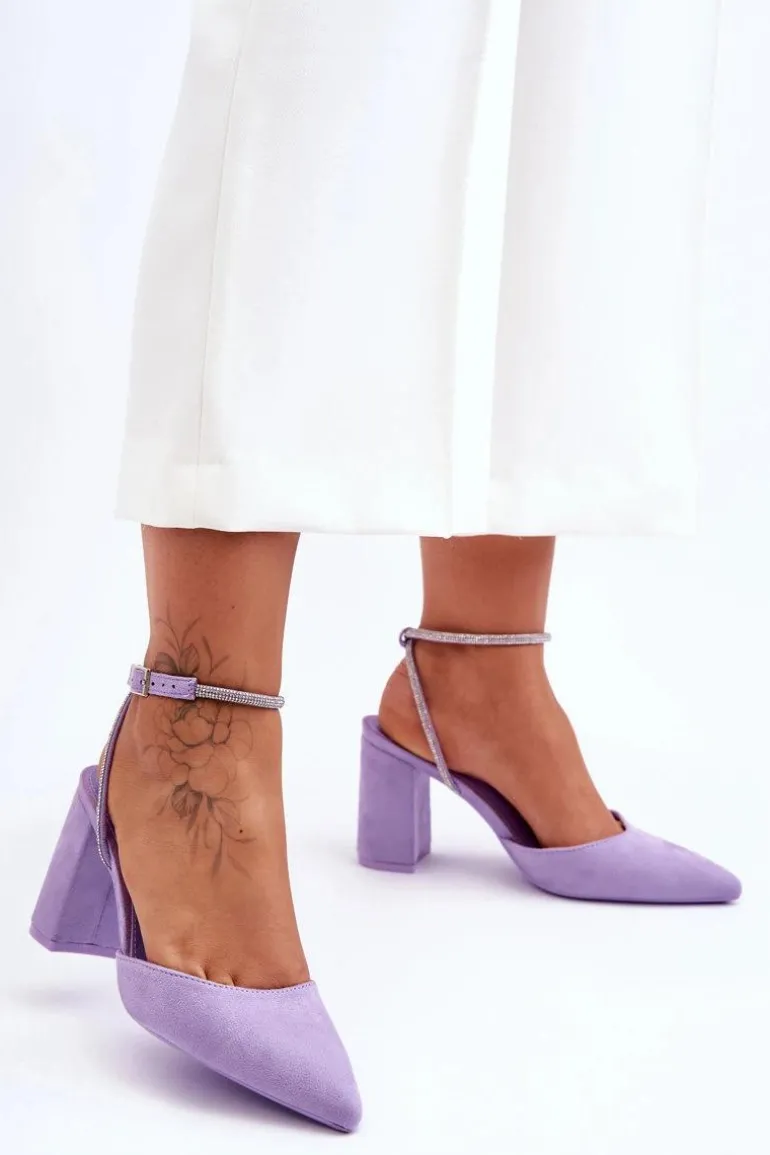 Zamszowe Czółenka Z Ozdobnym Paseczkiem Fioletowe Lirosa