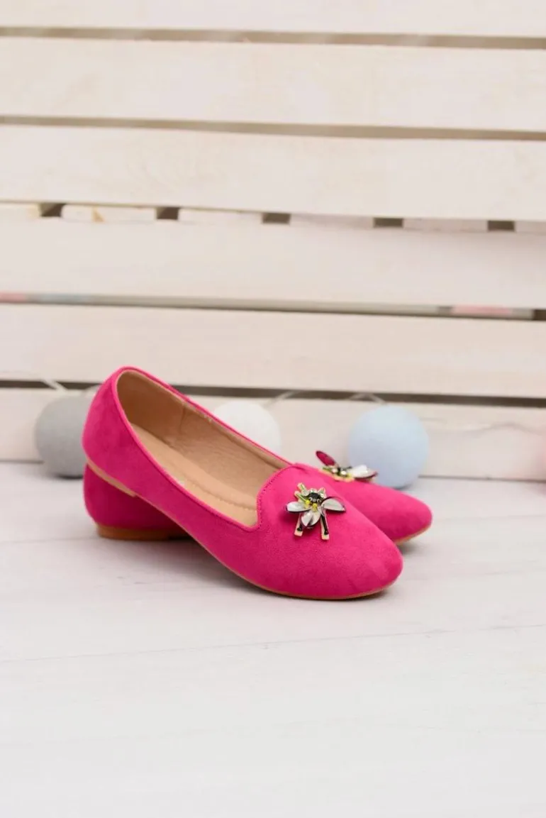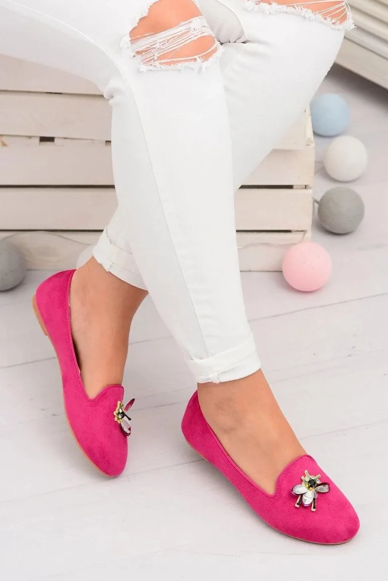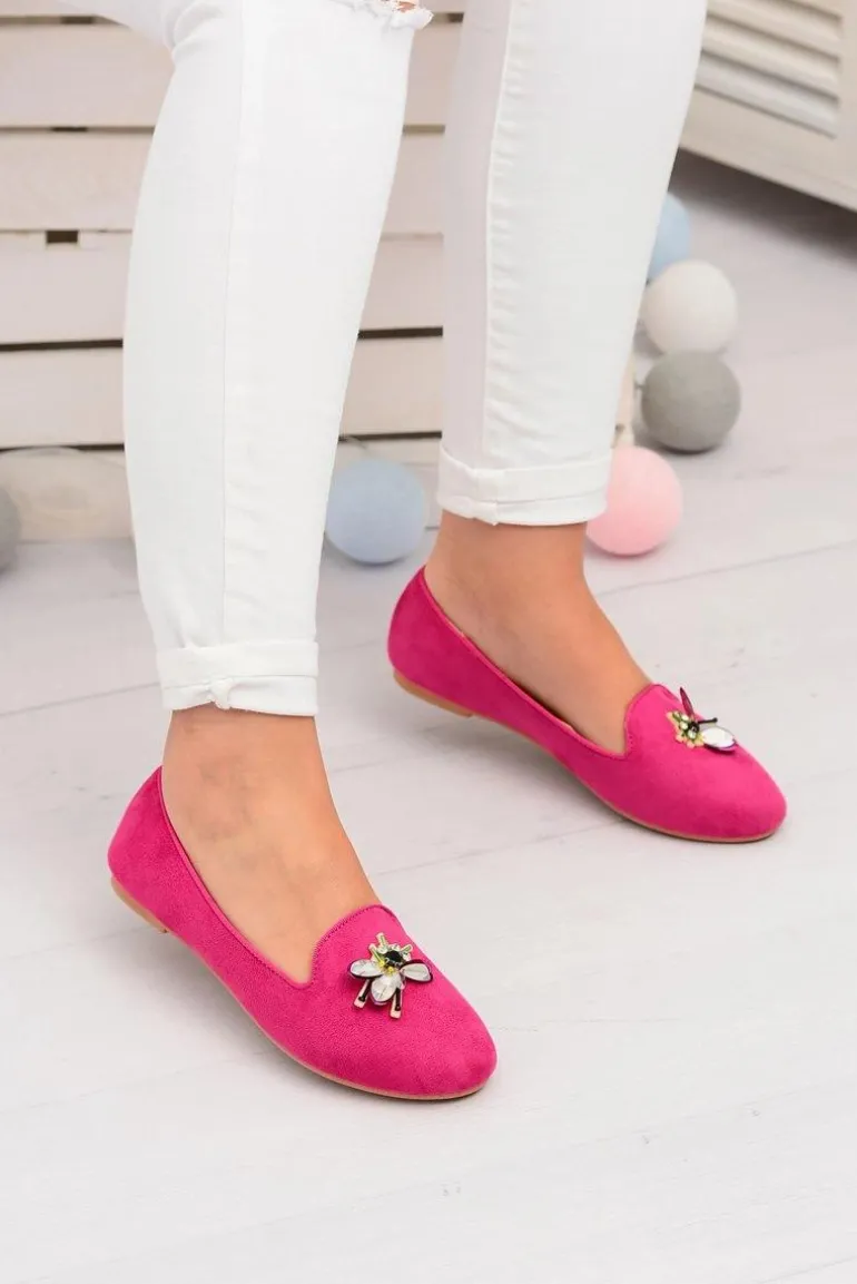 Zamszowe Damskie Balerinki Lordsy Fuksja Veni