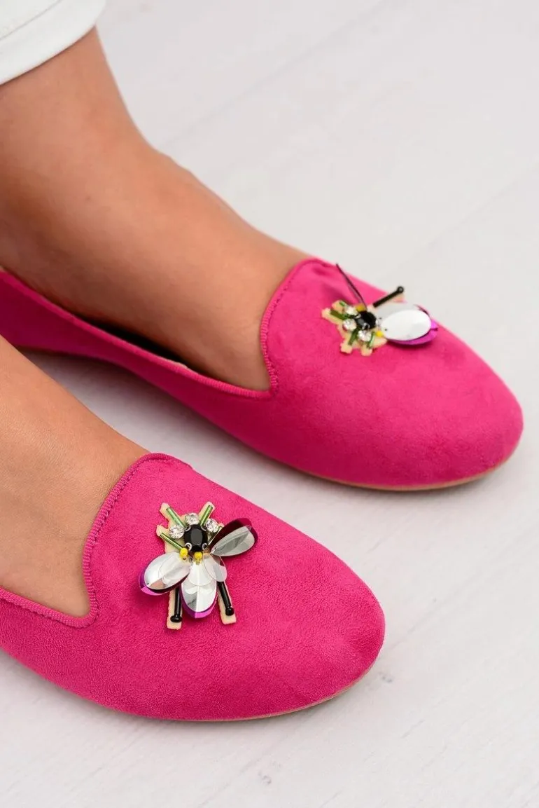 Damskie balerinki z oryginalnym wzorem na wierzchu! Poczuj wiosnę razem z nami i spraw sobie te cudowne balerinki! Niezwykle modne a do tego mega wygodne. O nasz komfort zadba piankowa, profilowana wkładka. Nie będziesz chciała ich zdejmować, ale to w niczym nie przeszkadza ponieważ pasują do każdej letniej stylizacji. Wierzch wykonany z delikatnego ekozamszu i dostępny jest aż w trzech wspaniałych kolorach! Wzór z naszywką w postaci muszki nadaje im niesamowitego uroku.
