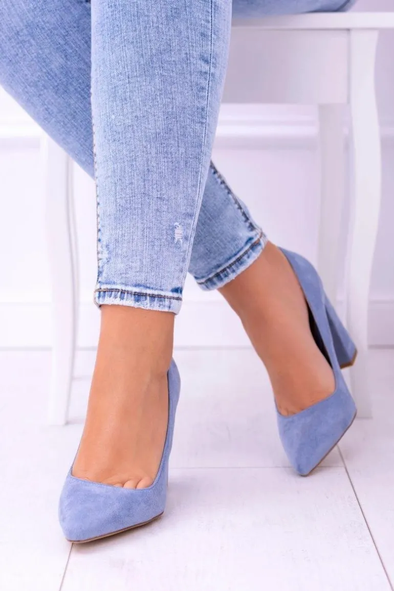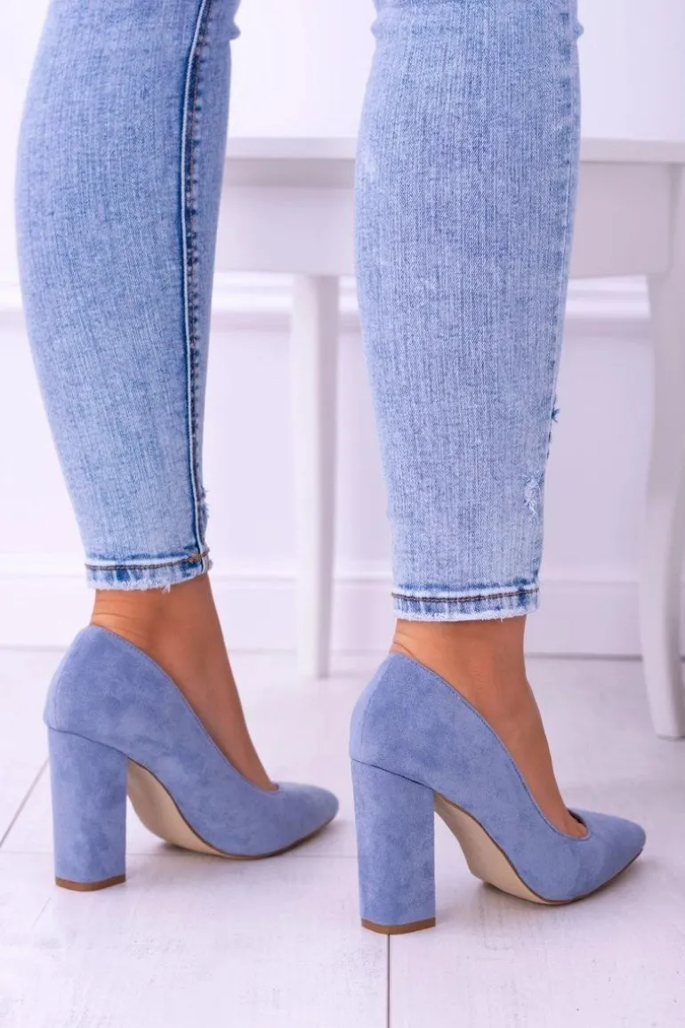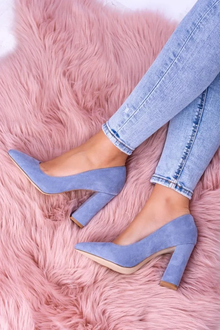 Zamszowe Damskie Błękitne Czółenka Na Słupku Celine