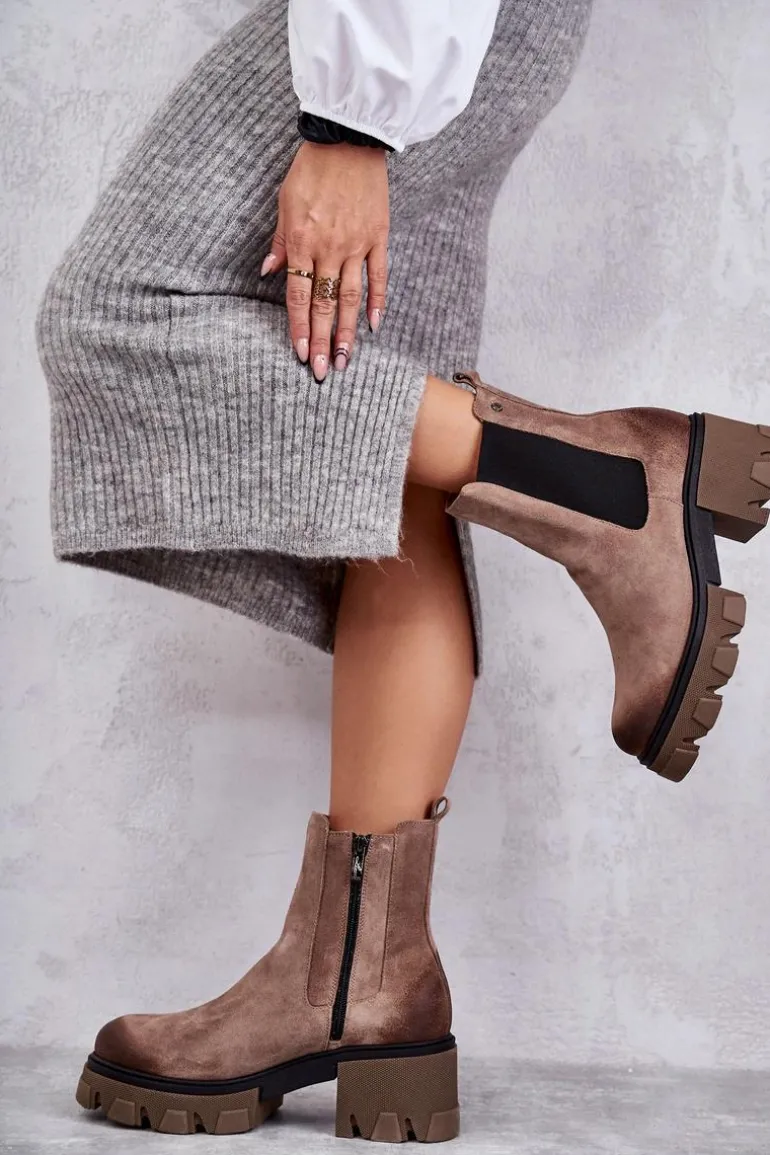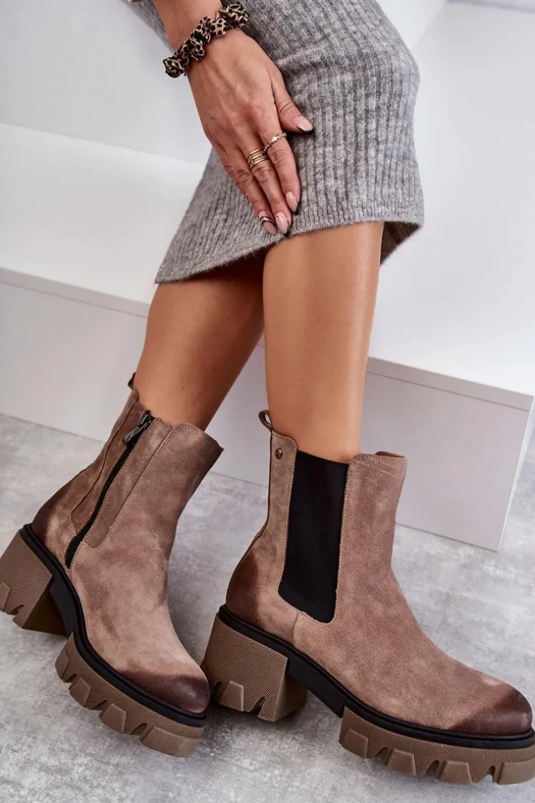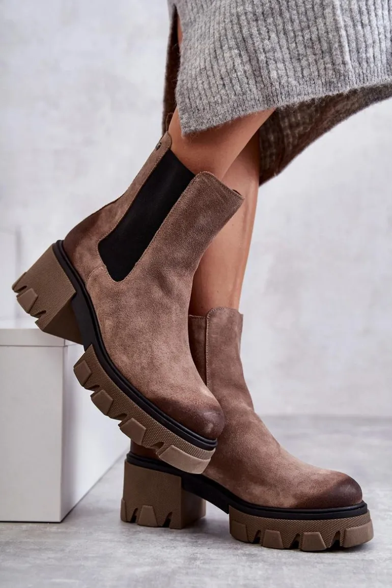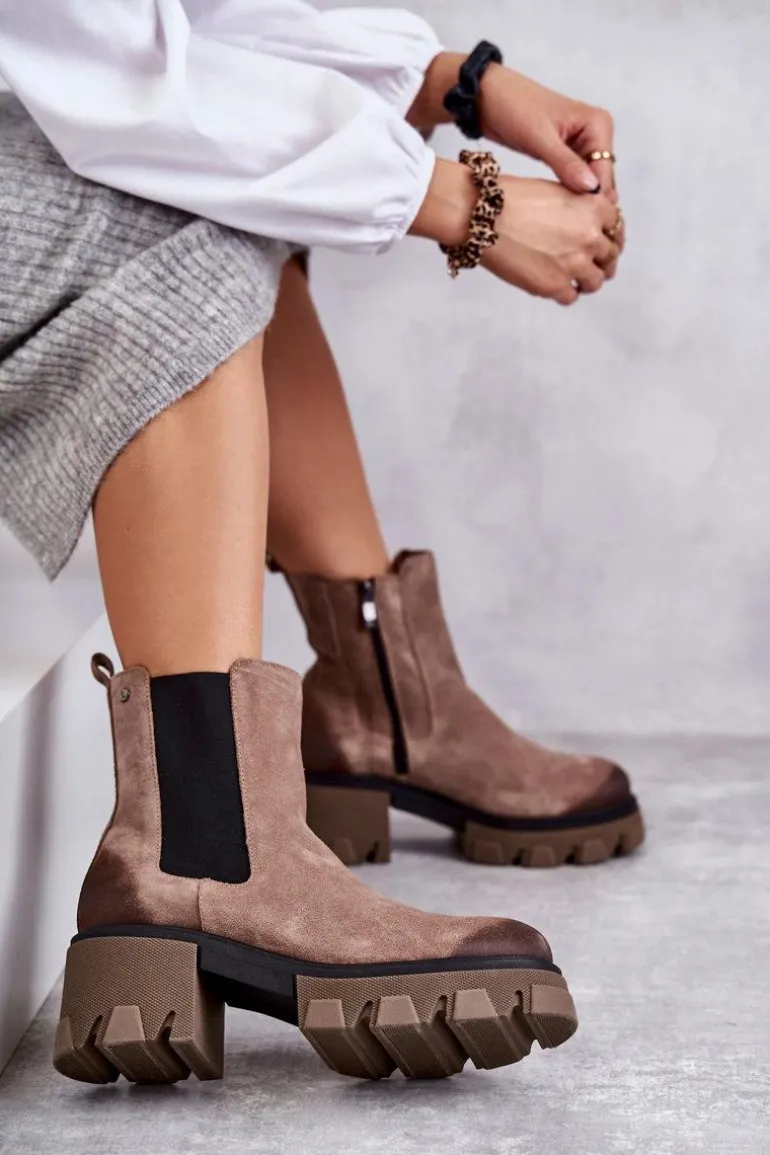 Zamszowe Damskie Botki Na Platformie Beżowe Lemar Hilde
