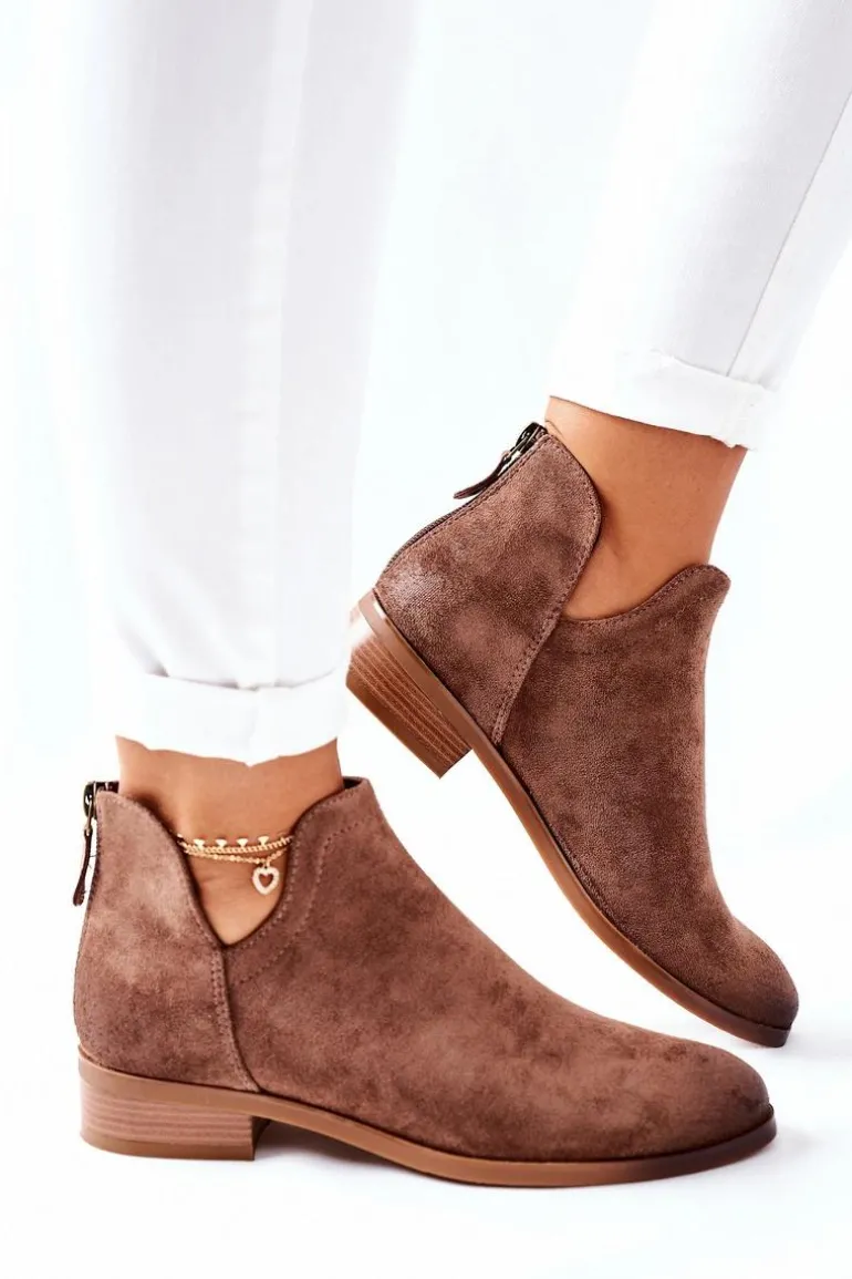 Botki wykonane z ekozamszu idealnie pasują do wielu kobiecych stylizacji. Wnętrze botków pokryte zostało kocem obuwniczym, który zagwarantuje ciepło. Zakładanie ułatwi wszyty z tyłu suwak. Przy wyborze rozmiaru prosimy sugerować się tabelą rozmiarów.