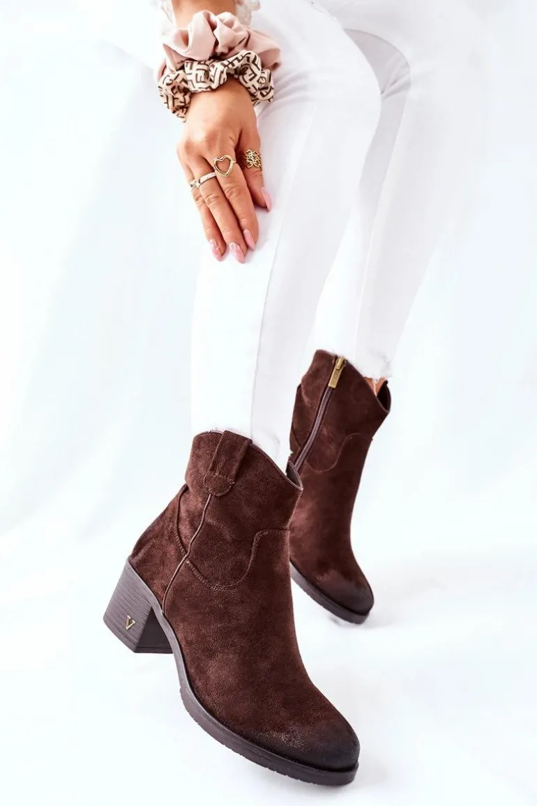 Cholewka wykonana jest z zamszowej skóry ekologicznej. Wnętrze botków pokryte zostało ciepłym kocem obuwniczym, który zagwarantuje ciepło. Zakładanie ułatwi wszyty z tyłu suwak. Przy wyborze rozmiaru prosimy sugerować się tabelą rozmiarów.