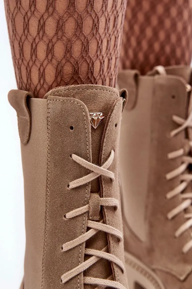 Workery damskie wykonane ze skóry naturalnej zamszowej. Osadzone na płaskim obcasie i platformie. Na cholewce elastyczne wstawki oraz suwak z tyłu. Noski zaokrąglone. Skórzana wkładka zapewni komfortowe użytkowanie obuwia. Przy wyborze rozmiaru prosimy sugerować się tabelą rozmiarów.