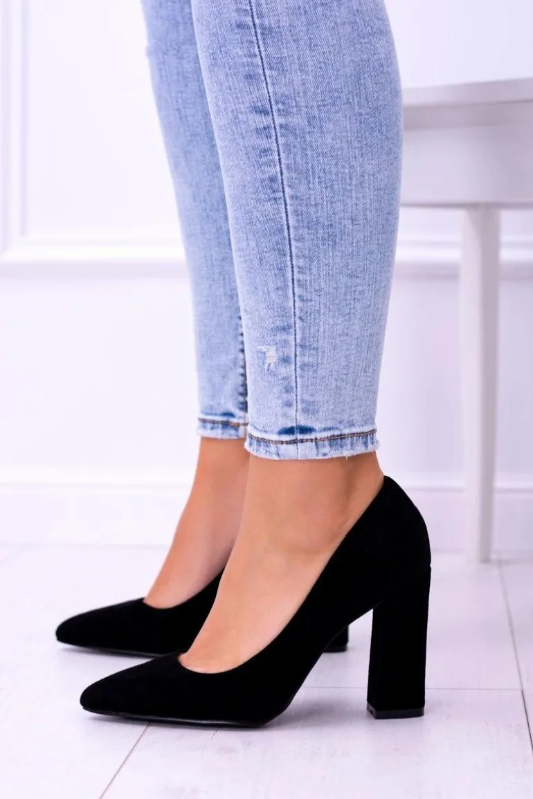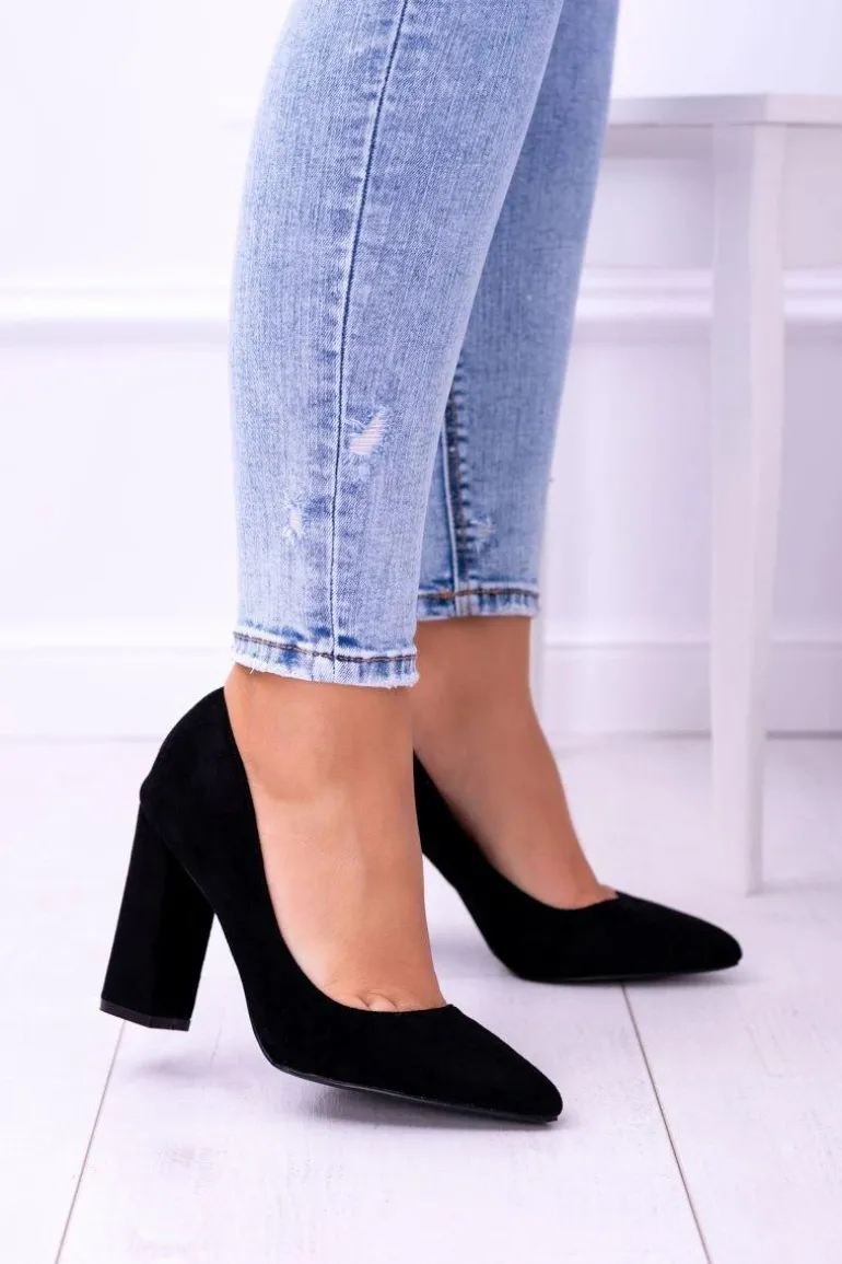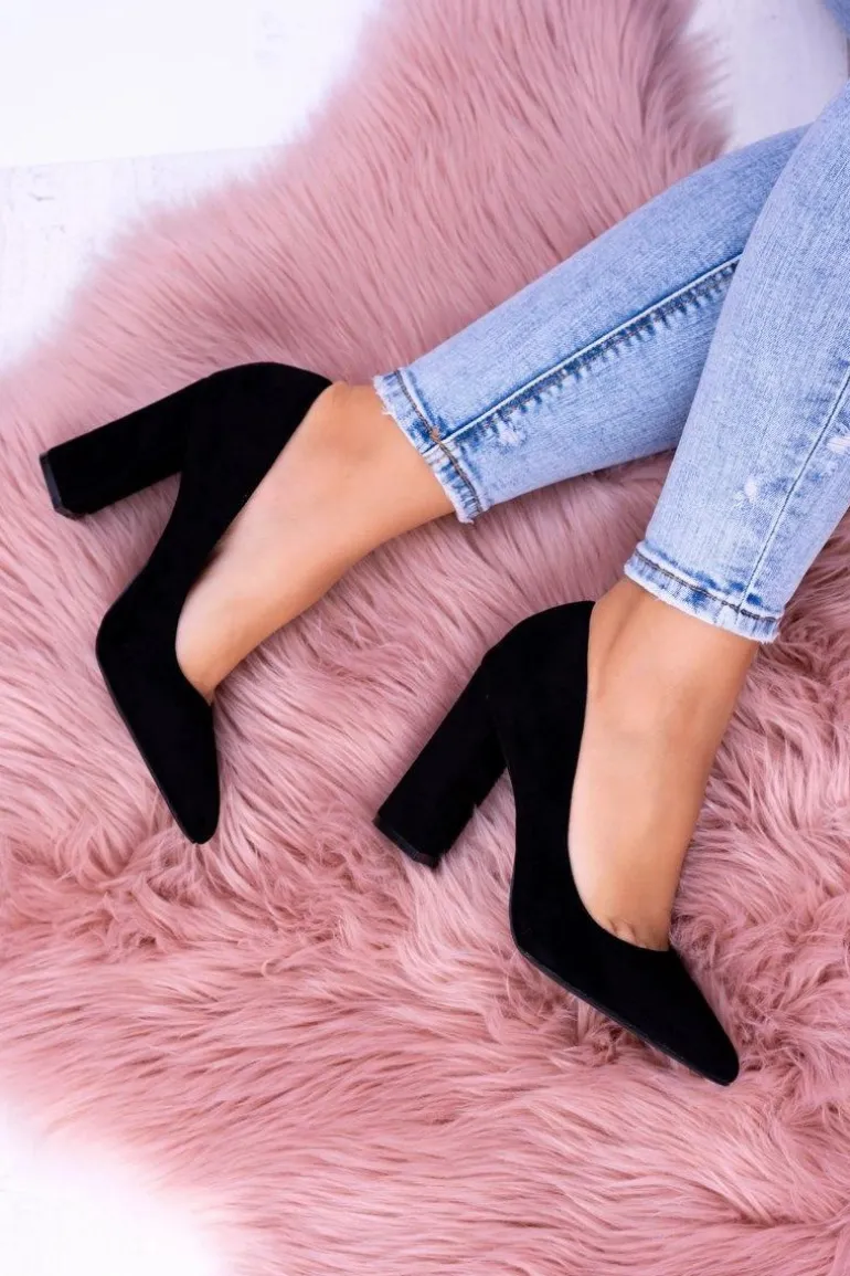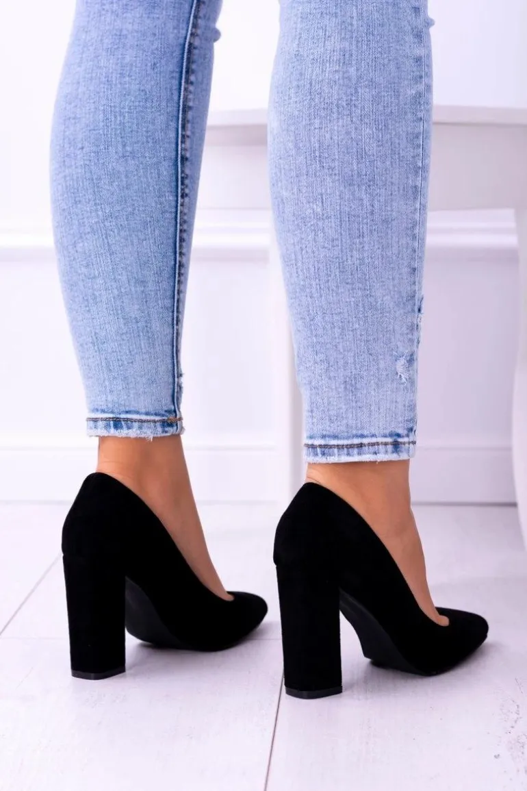 Zamszowe Damskie Czarne Czółenka Na Słupku Celine