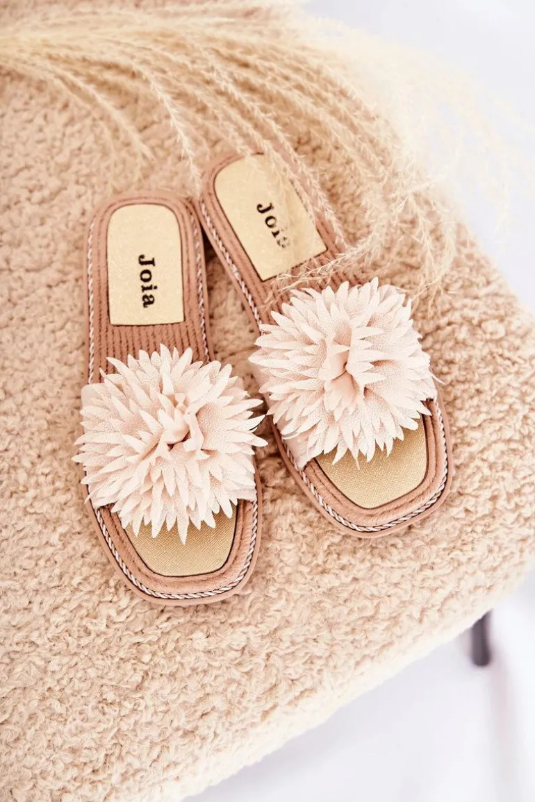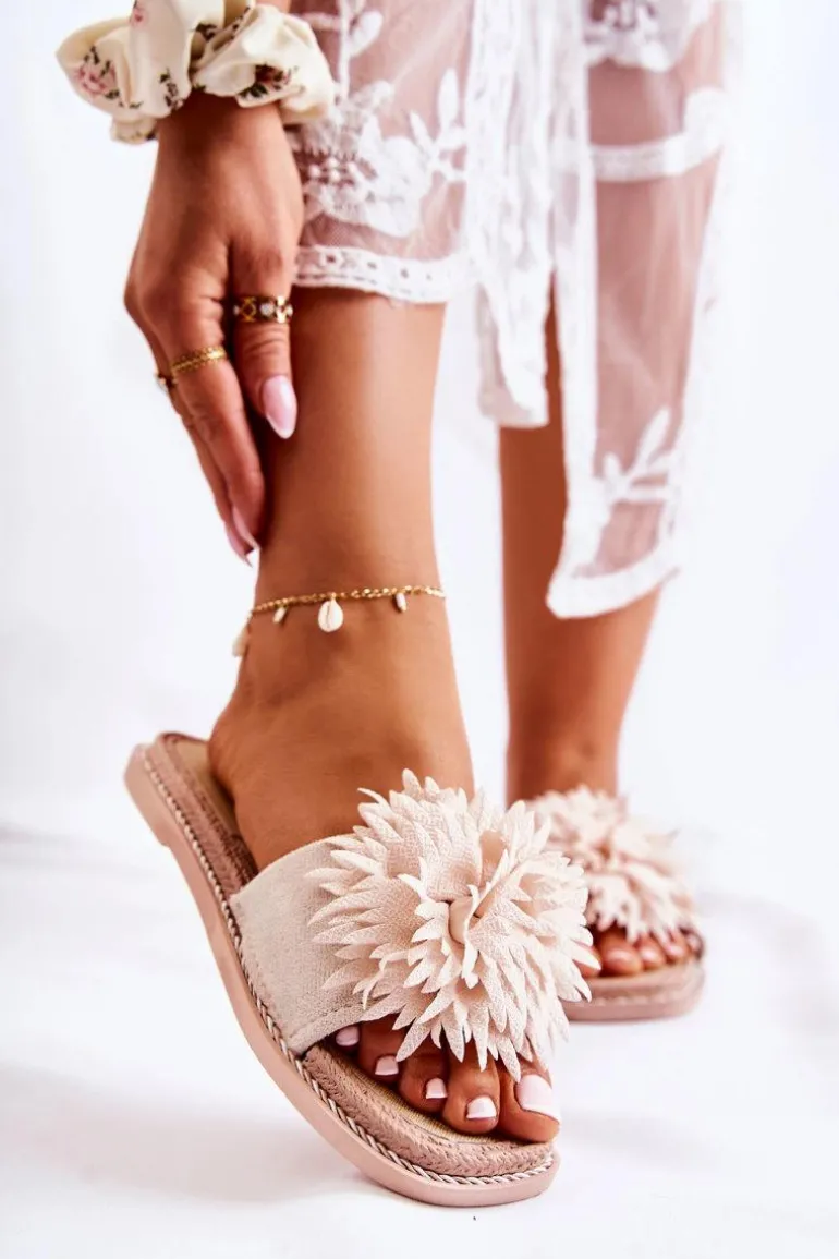 Zamszowe Damskie Klapki Z Ozdobą Beżowe Giorgia