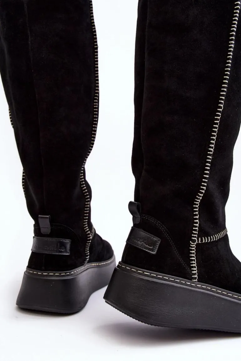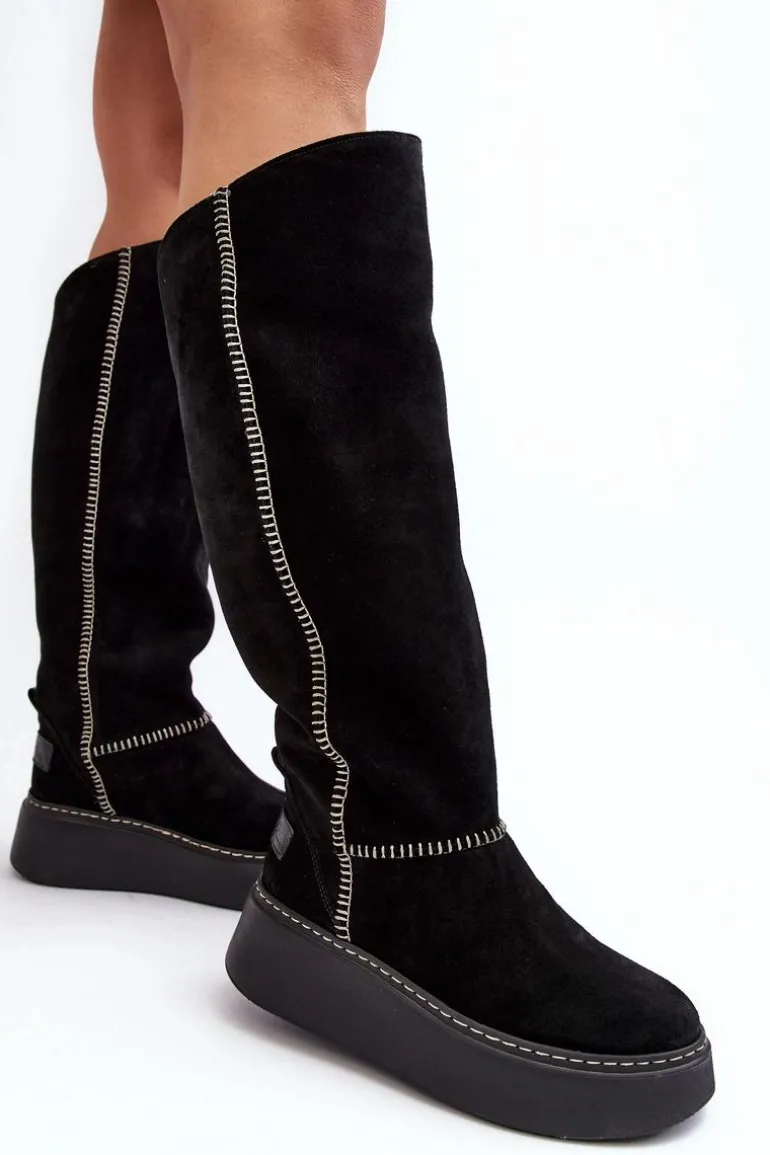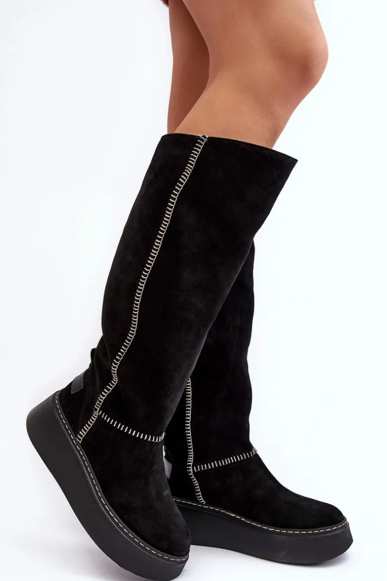 Damskie kozaki od marki Maciejka. Wykonane z naturalnego zamszu. Osadzone na masywnej platformie, która świetnie odizoluje od zimnego podłoża. Środek ocieplony kożuszkiem. Model wsuwany z cholewką przed kolano. Noski zaokrąglone. Kozaki dopełnią każdą Twoją stylizację. Koniecznie sprawdź całą naszą ofertę butów Maciejka! Przy wyborze rozmiaru prosimy sugerować się tabelą rozmiarów.