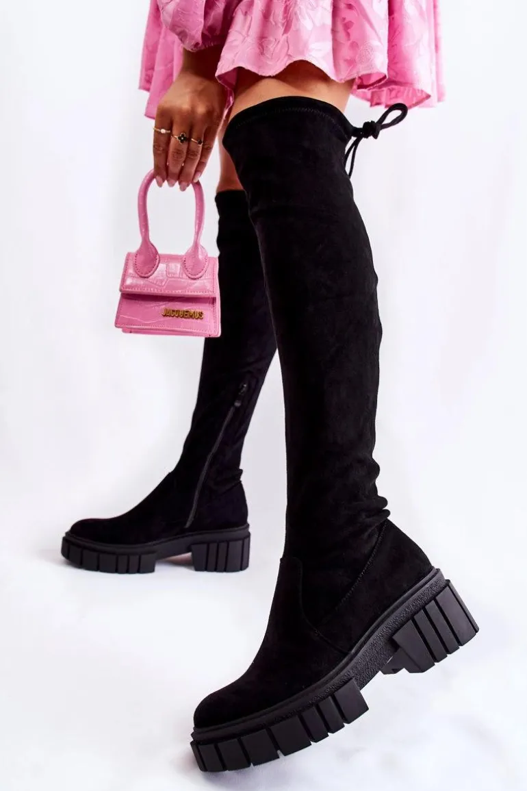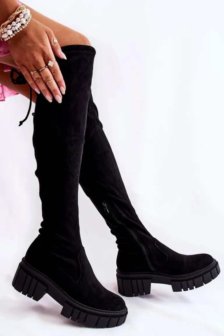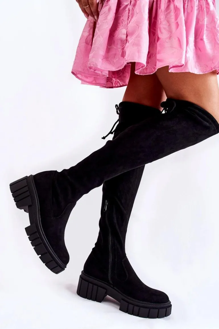 Zamszowe Damskie Kozaki Za Kolano Czarne Cheera