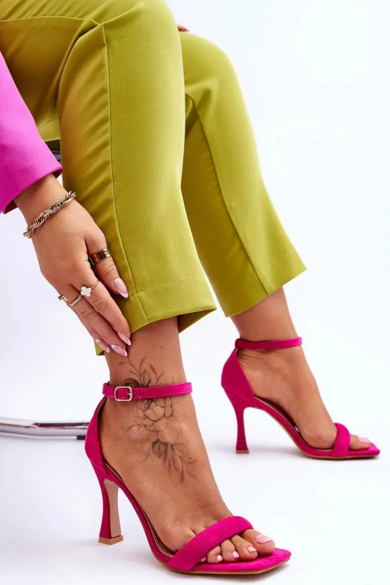 Zamszowe Damskie Sandały Na Obcasie Fuksja Rousses