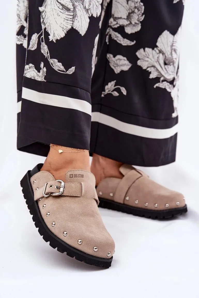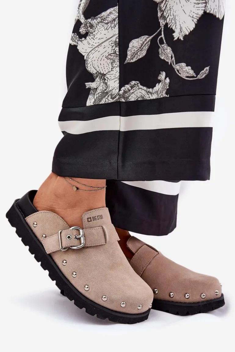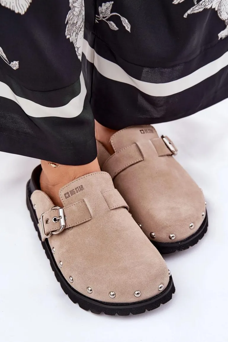 Zamszowe Klapki Chodaki Damskie Na Platformie Big Star RR274A376 Beżowe