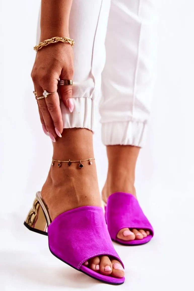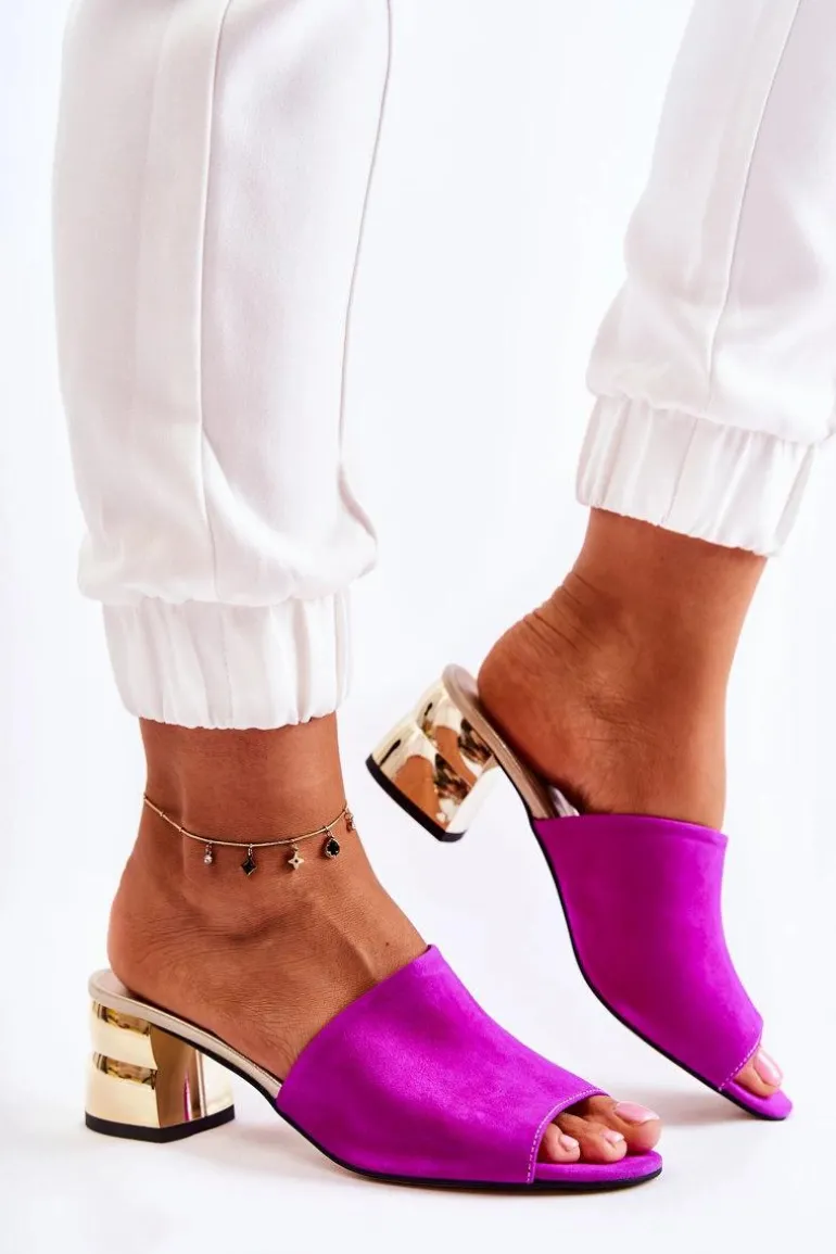 Modne, a zarazem wygodne klapki damskie zostały osadzone na obcasie w postaci klocka. Cholewka wykonana z naturalnego zamszu. Nosek odkryty, zaokrąglony. Miękka wkładka została wykonana z naturalnej skóry. Model klasyczny, wsuwany. Świetnie sprawdzą się do wielu stylizacji. Idealnie dopasują się do tęgości nogi, dzięki skórzanej wyściółce. Spraw sobie radość kupując nową parę butów, które będą idealne na letnie dni! Przy wyborze rozmiaru prosimy sugerować się tabelą rozmiarów.