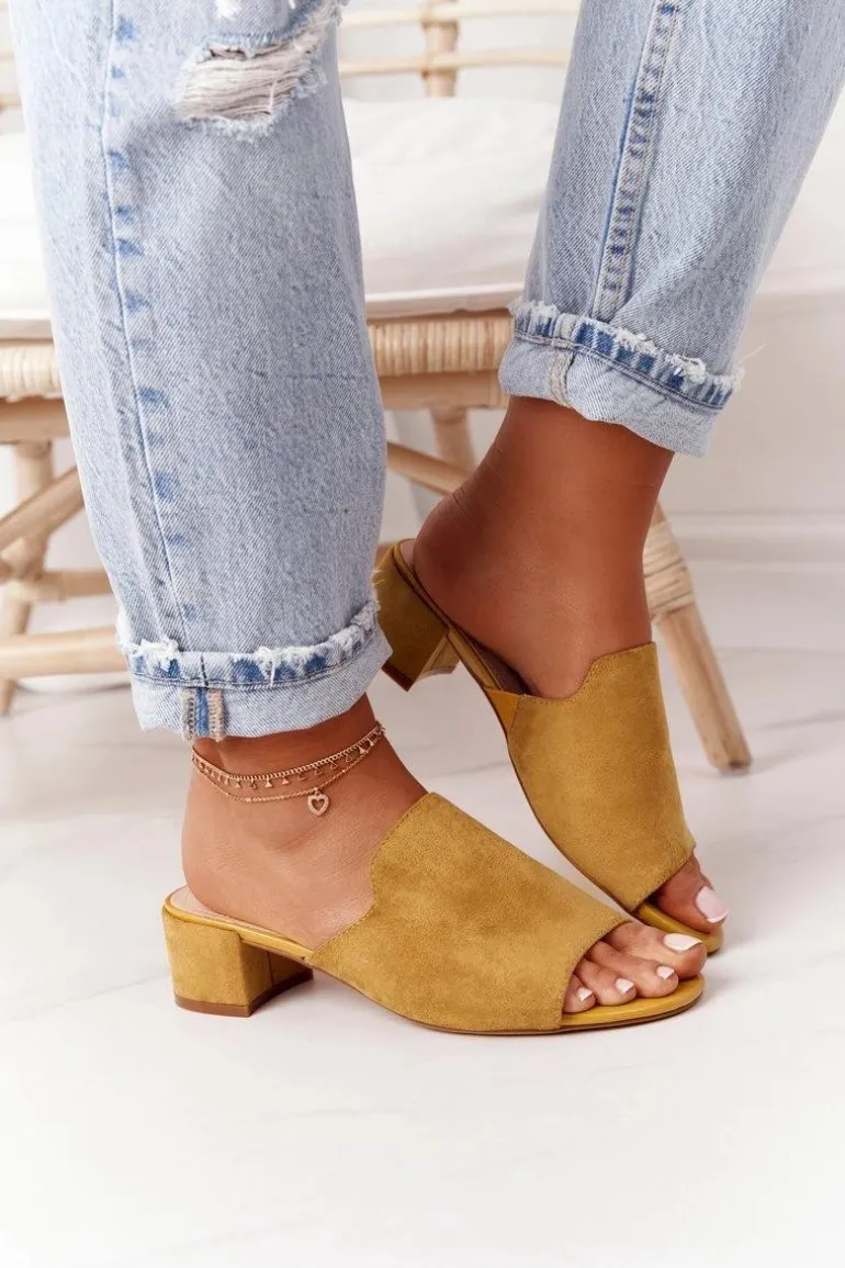 Wyjątkowe klapki na obcasie marki Sergio Leone. Buty wykonane są z eko zamszu z dbałością o detale. Miękka wkładka ze skóry naturalnej zadba o Twoją wygodę! Modny fason urozmaici letnią garderobę! Przy wyborze rozmiaru prosimy kierować się tabelą rozmiarów.
