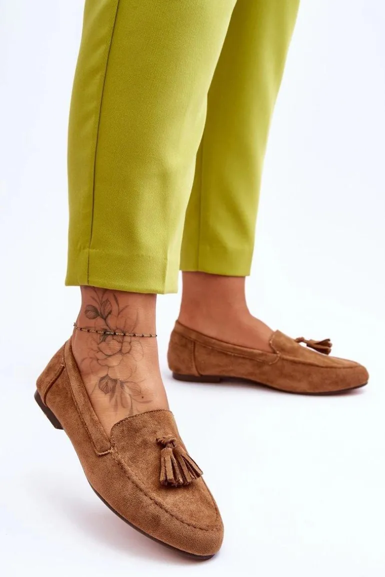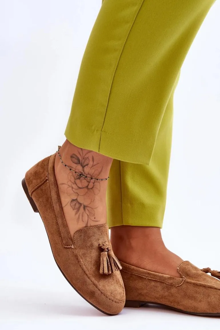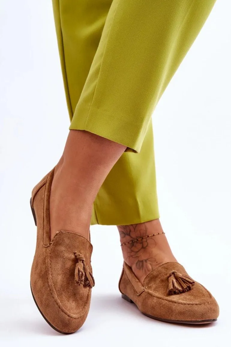 Zamszowe Klasyczne Mokasyny Z Frędzlami Brązowe Averil