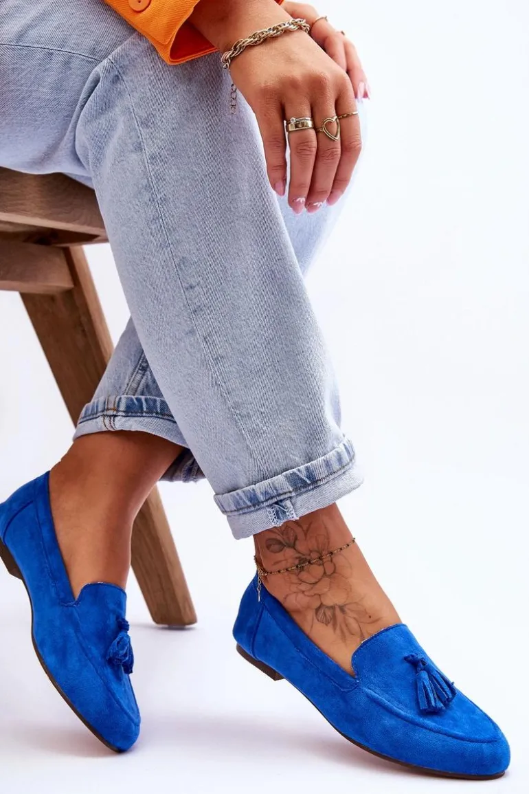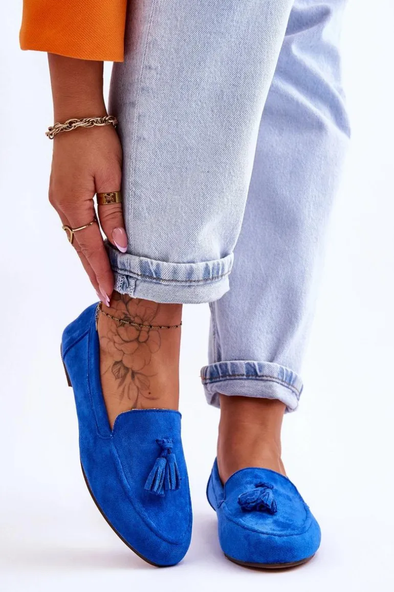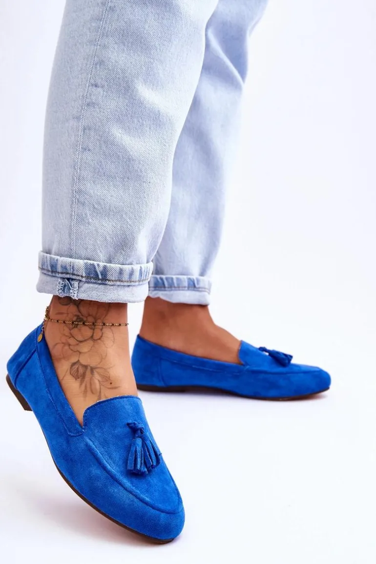 Zamszowe Klasyczne Mokasyny Z Frędzlami Niebieskie Averil