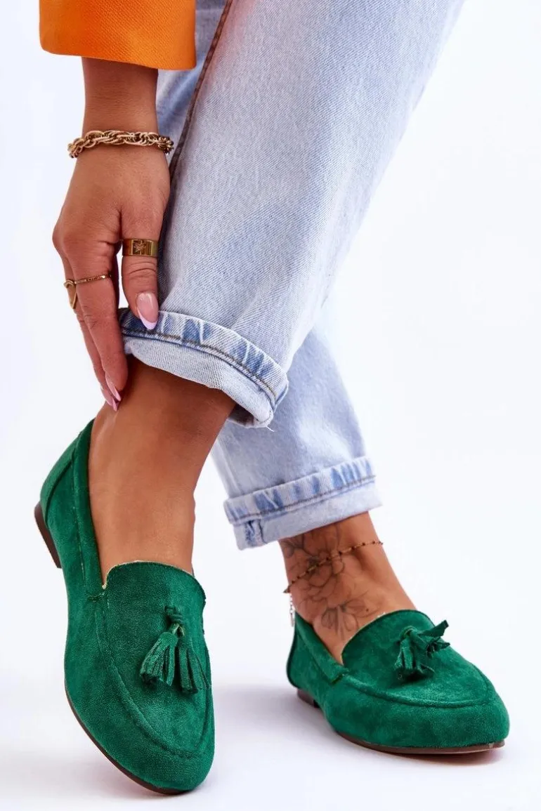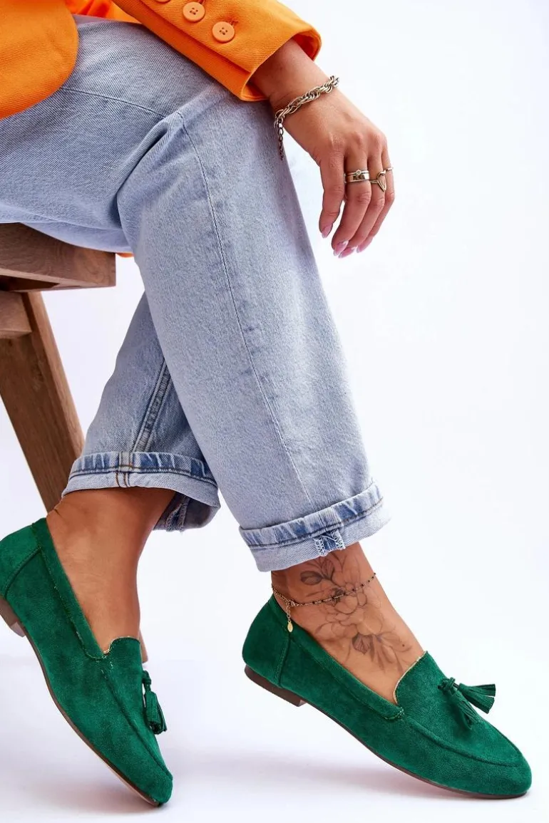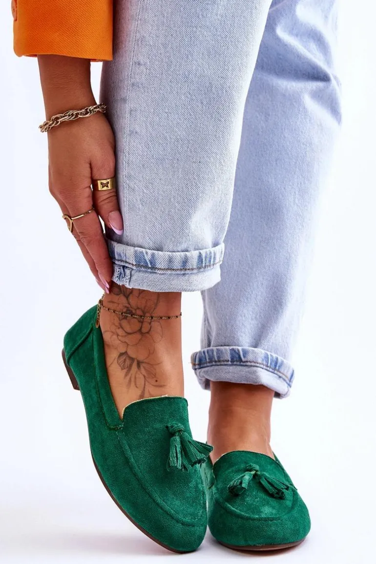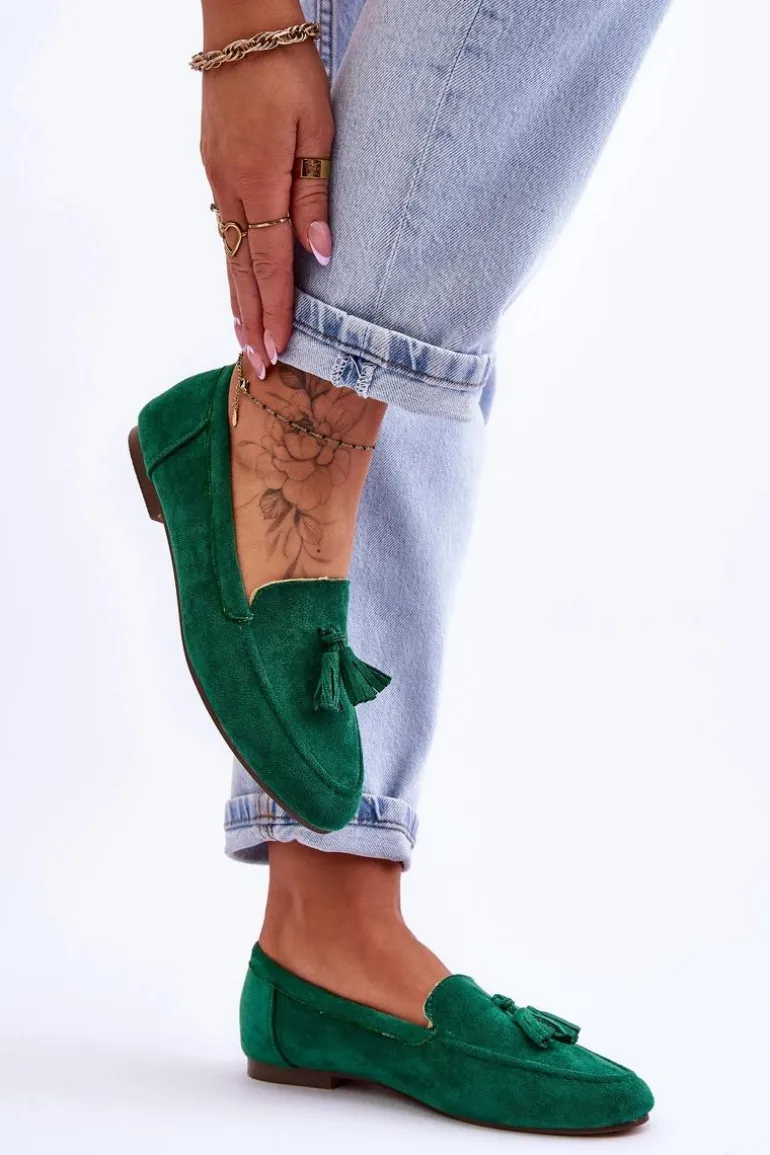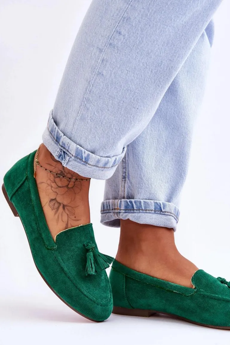 Zamszowe Klasyczne Mokasyny Z Frędzlami Zielone Averil