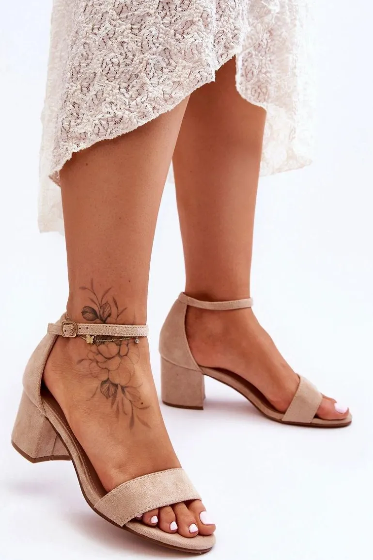 Zamszowe Klasyczne Sandały Na Niskim Obcasie Beżowe Honeymoon