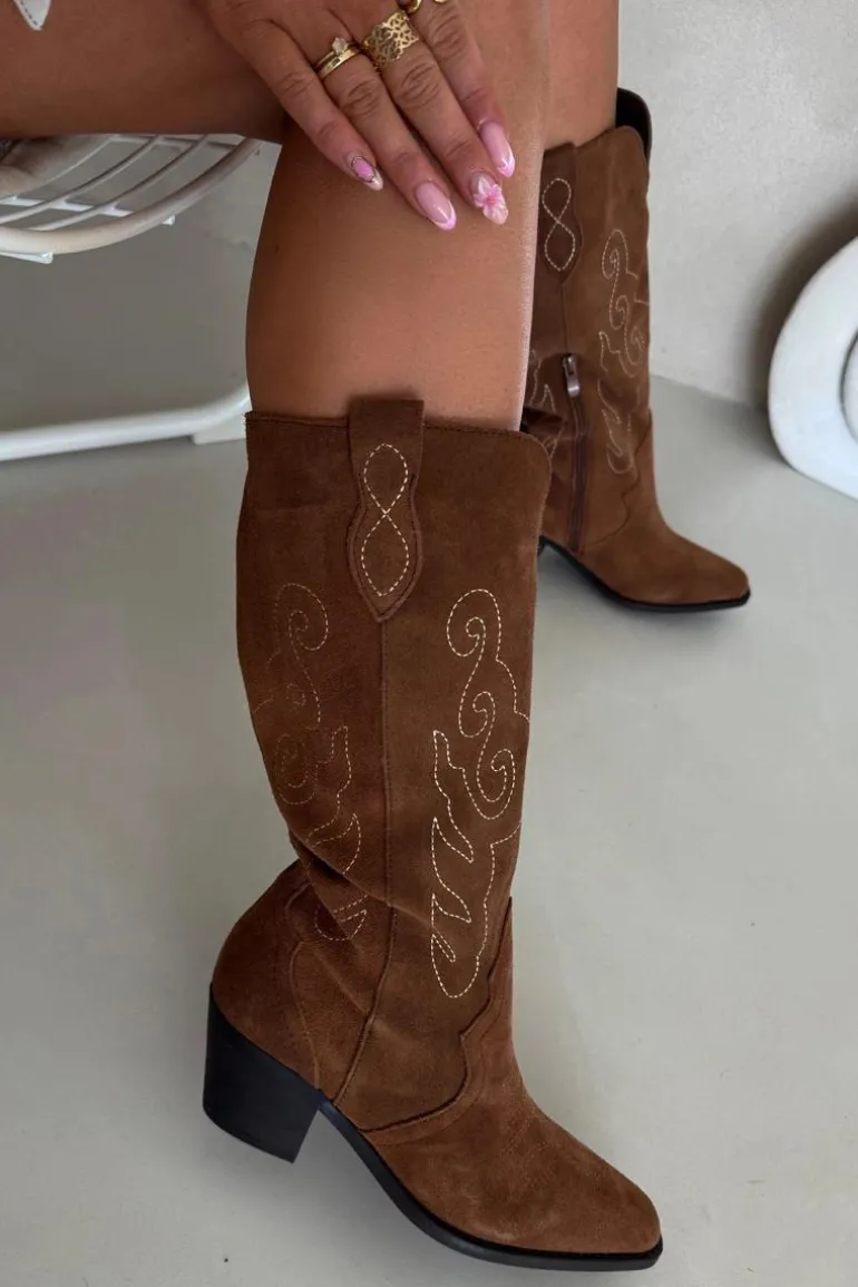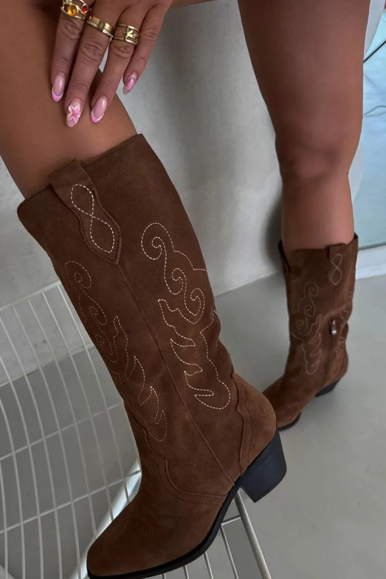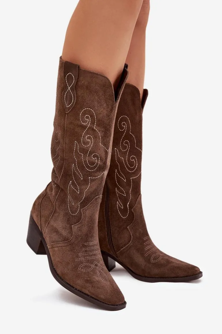 Kozaki damskie w stylu kowbojek to niezwykle modne obuwie na sezon jesienno-zimowy. Wykonane z naturalnego zamszu. Stabilny, niski obcas sprawia, że są one wygodne i idealne do noszenia na co dzień. Model wsuwany z dodatkowym zapięciem na suwak ułatwia zakładanie butów. Cholewka z przeszyciami, co dodaje im charakterystycznego, kowbojskiego stylu. Stylowy fason sprawia, że te kozaki będą doskonałym wyborem do różnych stylizacji, zarówno na co dzień, jak i na specjalne okazje. Przy wyborze rozmiaru prosimy sugerować się tabelą rozmiarów.
