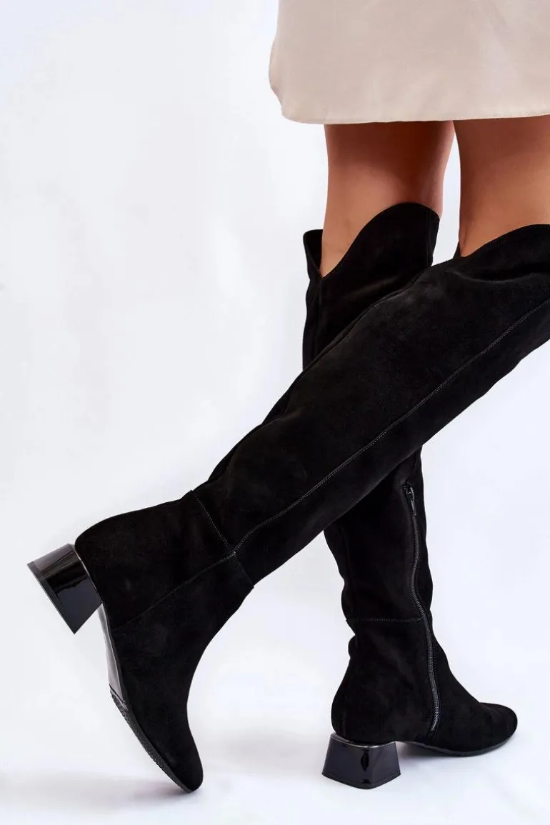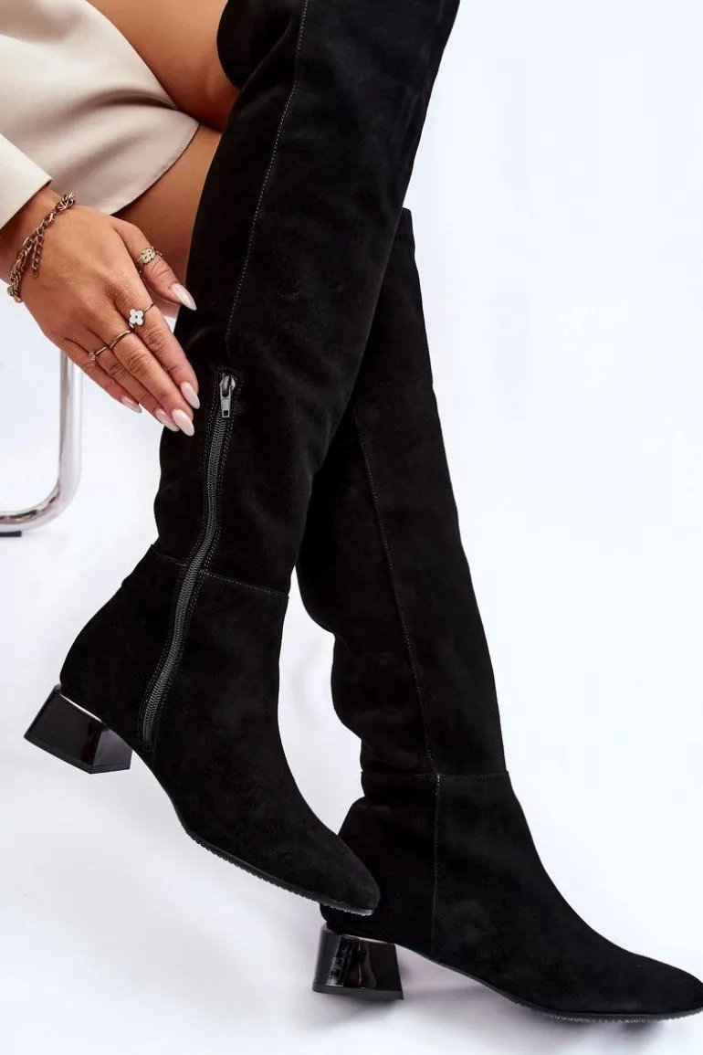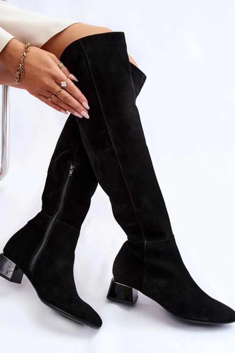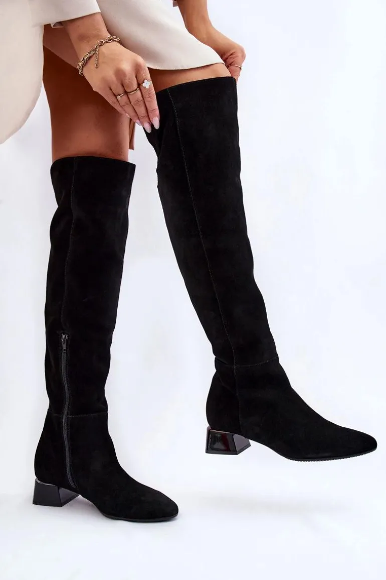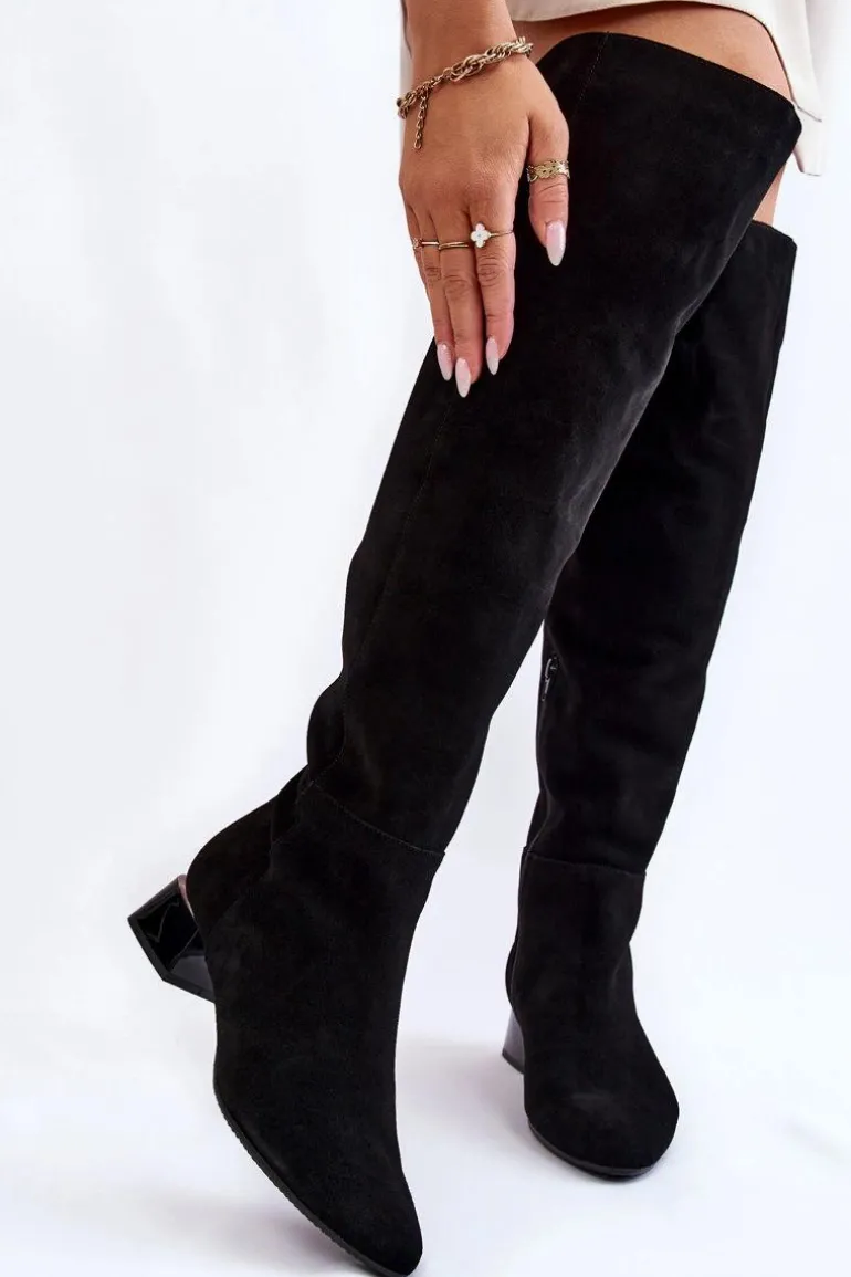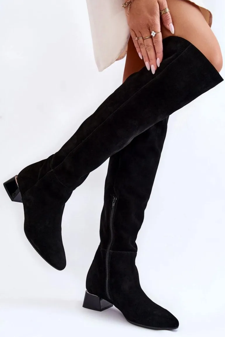 Klasyczne muszkieterki osadzone na obcasie w postaci niskiego klocka. Kozaki są wsuwane, z dodatkowym zamkiem z boku cholewki. Posiadają usztywniany zapiętek. Wnętrze zostało ocieplone kocem obuwniczym. Nosek w szpic. Kozaki te świetnie sprawdzą się podczas mroźnych dni. Koniecznie powinnaś je mieć! Przy wyborze rozmiaru prosimy kierować tabelą rozmiarów.