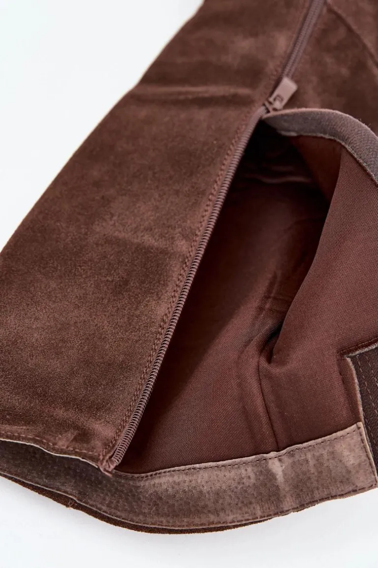 Zamszowe kozaki na słupku z zamkiem czekoladowe Lissara