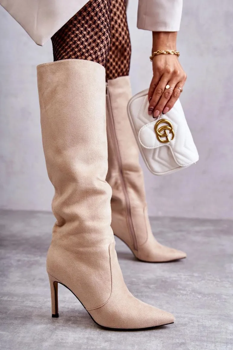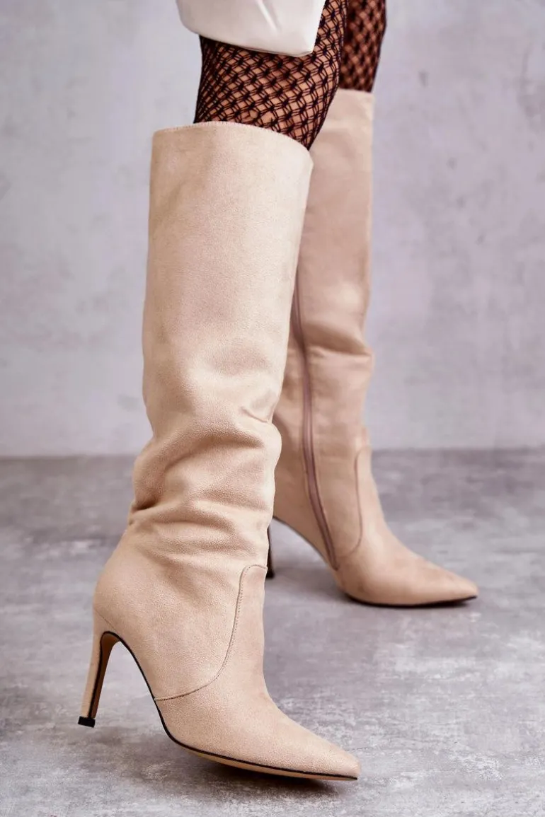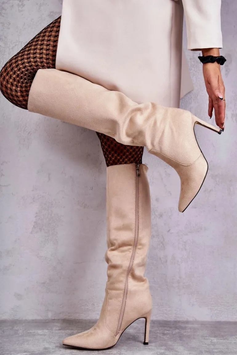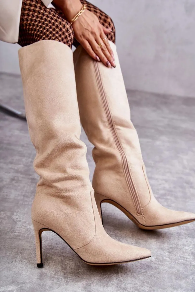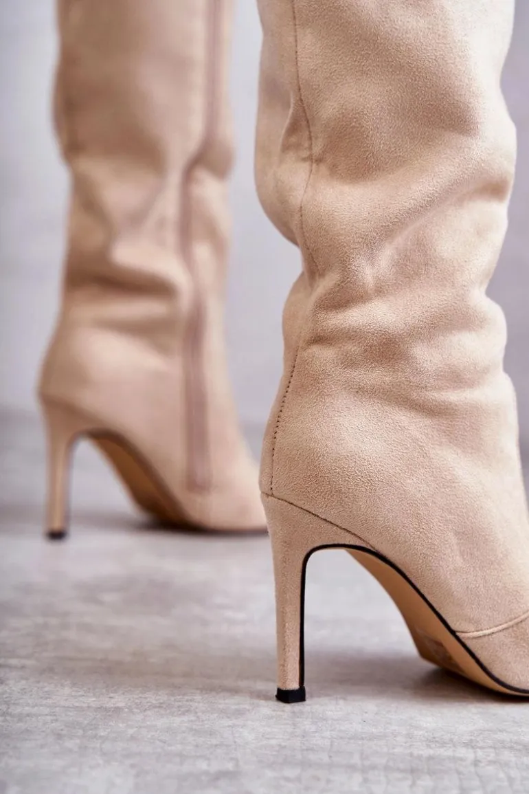Piękne, klasyczne kozaki damskie wykonane z przyjemnego w dotyku eko zamszu. Posiadają na całej długości suwak ułatwiający zakładanie obuwia. Buty osadzone na obcasie w postaci szpilki z noskiem w szpic świetnie wysmuklą nogi. Posiadają ocieplenie w postaci koca obuwniczego. Zapiętek w tych kozakach jest usztywniany. Model ten powinien znaleźć się w Twojej szafie! Przy wyborze rozmiaru prosimy sugerować się tabelą rozmiarów.
