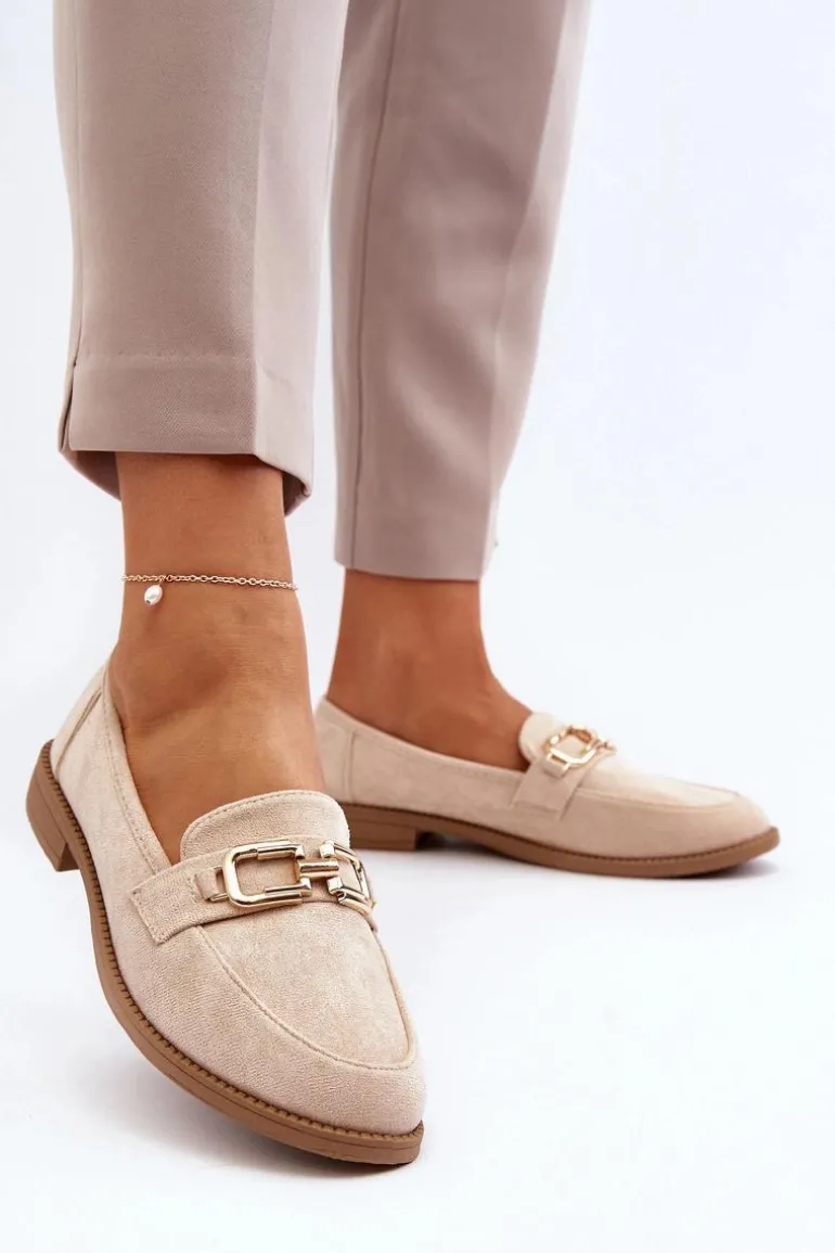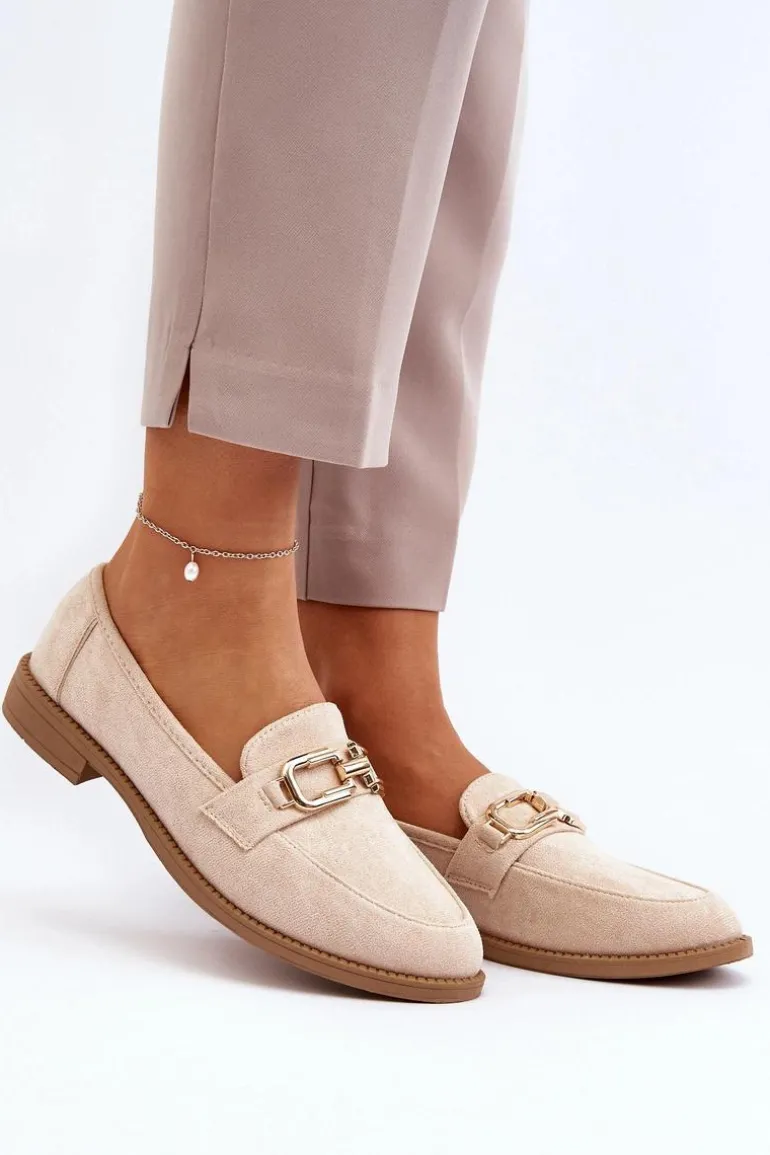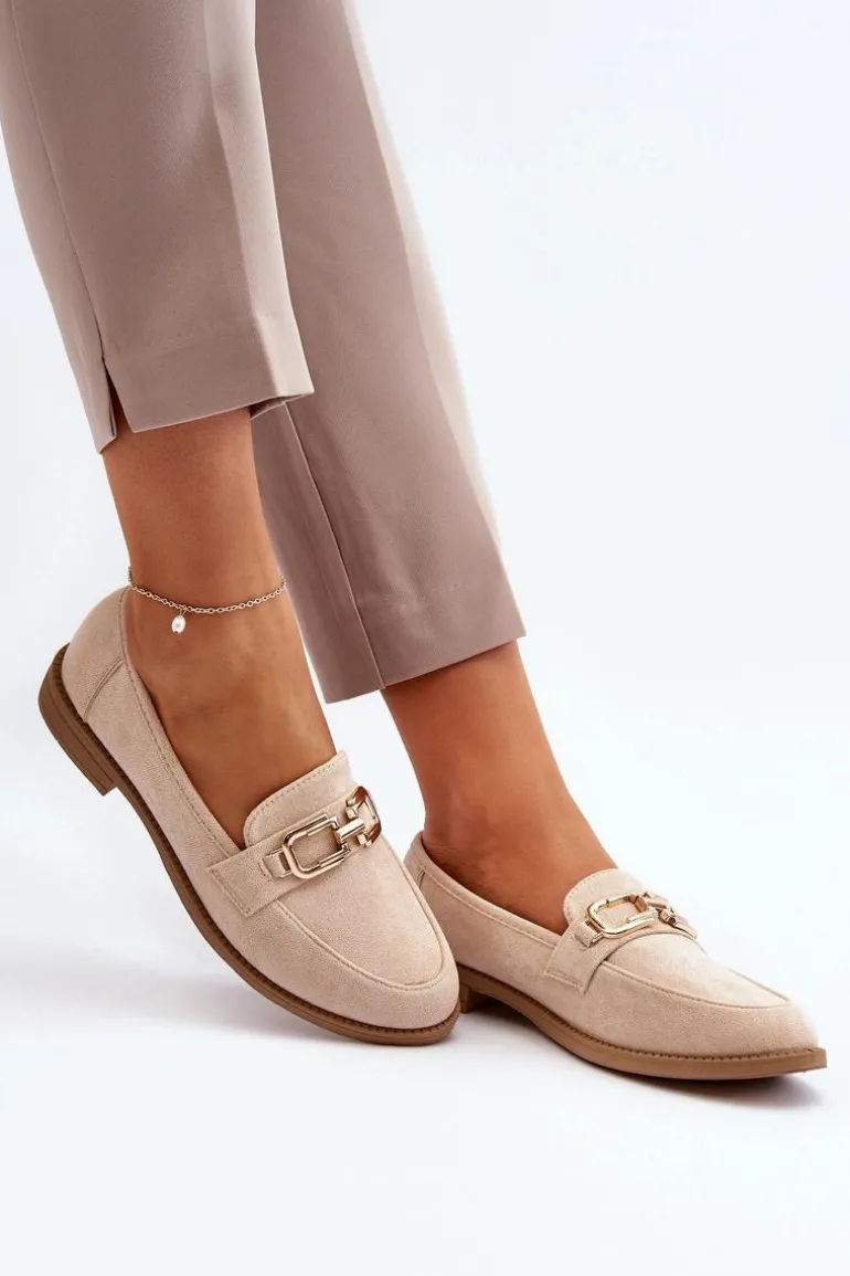 Mokasyny damskie wykonane z przyjemnego w dotyku eko zamszu. Osadzone na płaskim obcasie. Miękka wkładka zapewni komfort podczas noszenia nawet przez cały dzień. Przód ozdobiony jest subtelnym detalem. Noski w kształcie migdała dodają im klasycznego uroku. Fason ten idealnie będzie pasować do różnych stylizacji! Przy wyborze rozmiaru prosimy sugerować się tabelą rozmiarów.