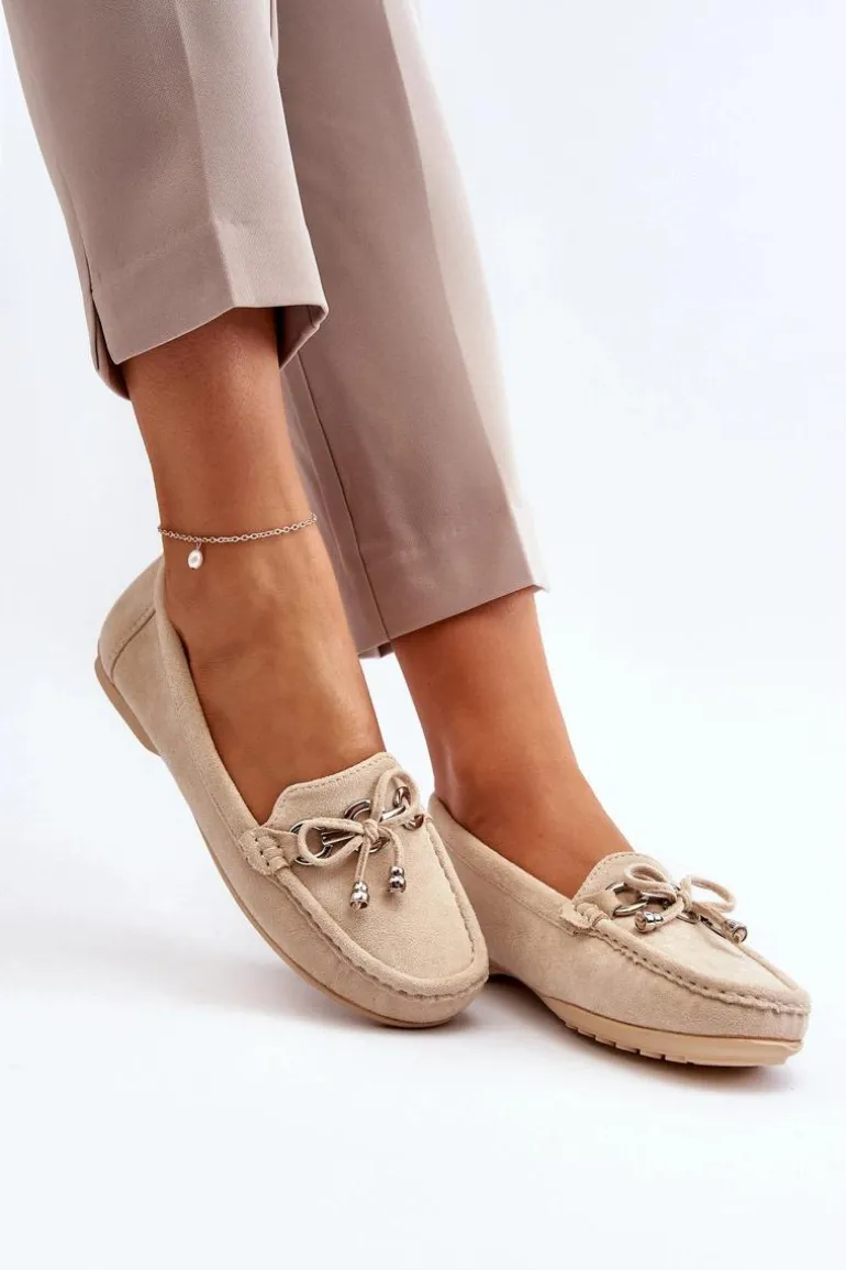 Zamszowe Mokasyny Damskie Ozdobą Beżowe Daphikaia
