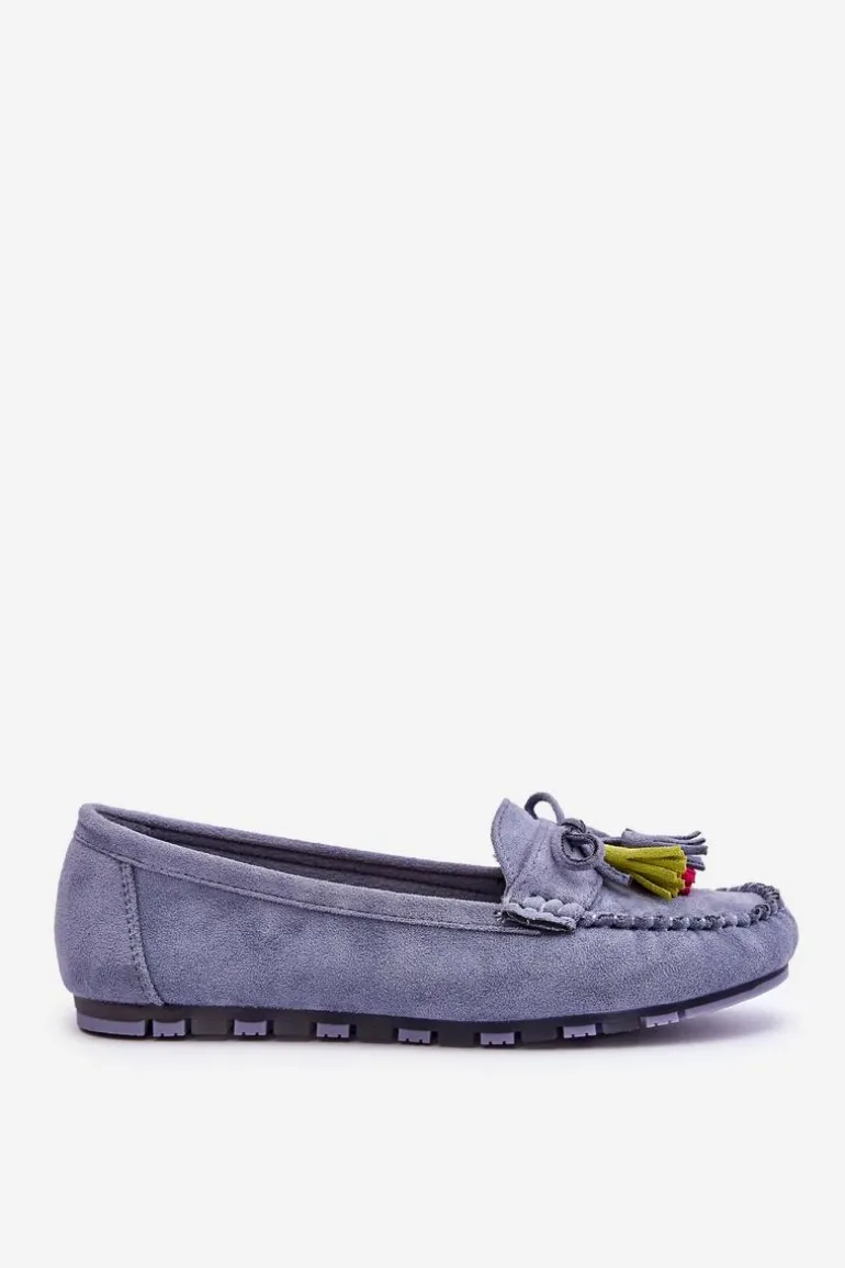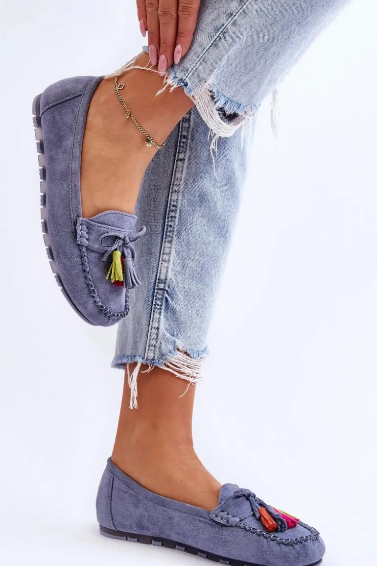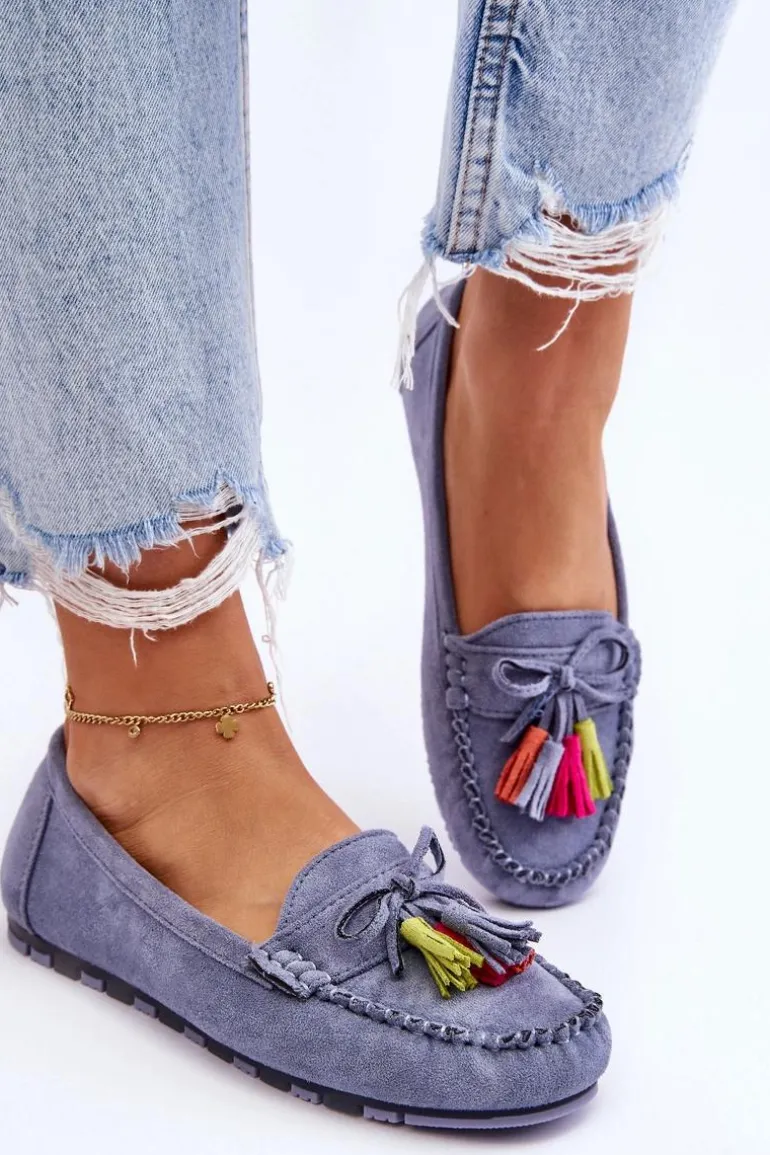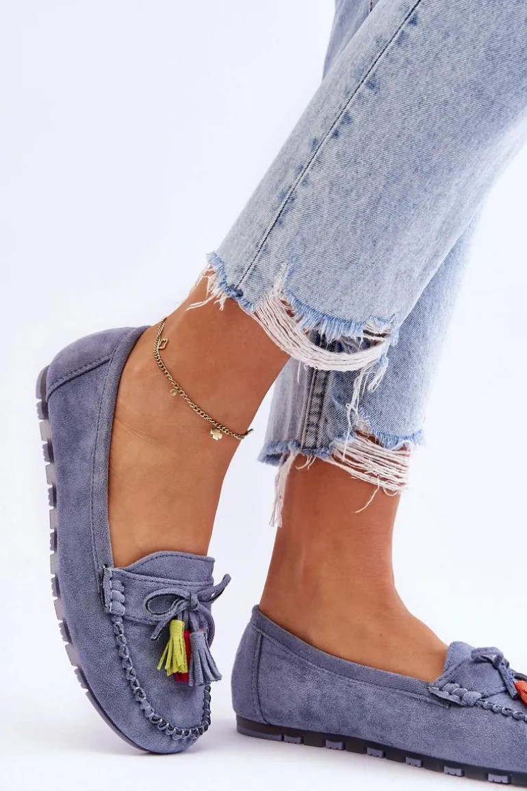 Niesamowicie wygodne mokasyny damskie zostały wykonane z eko zamszu. Wkładka z naturalnej skóry zapewni wygodę podczas użytkowania. Te fason dopełni wiele Twoich stylizacji. Mokasyny zostały osadzone na delikatnej platformie. Dodatkowo mokasyny posiadają ozdobną kokardę i frędzle. Przy wyborze rozmiaru prosimy sugerować się tabelą rozmiarów.