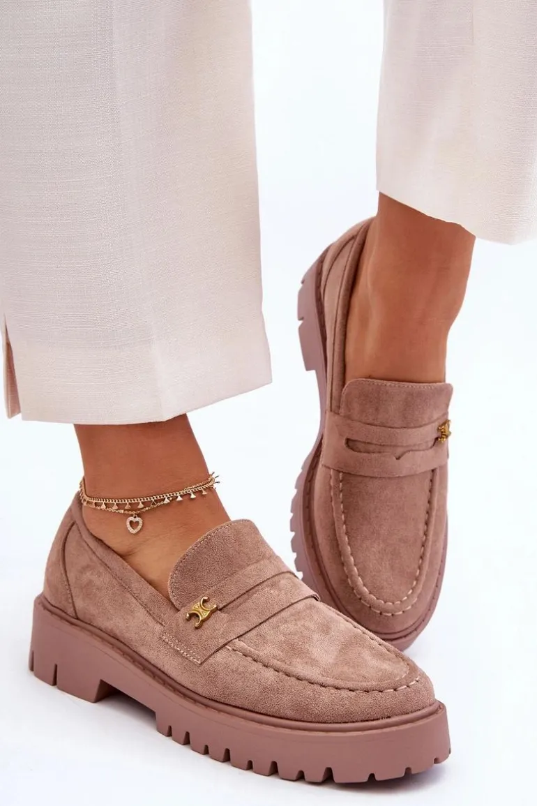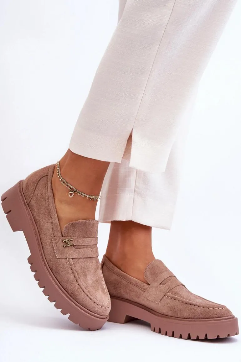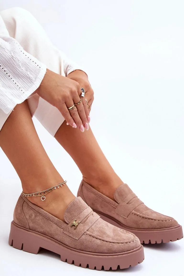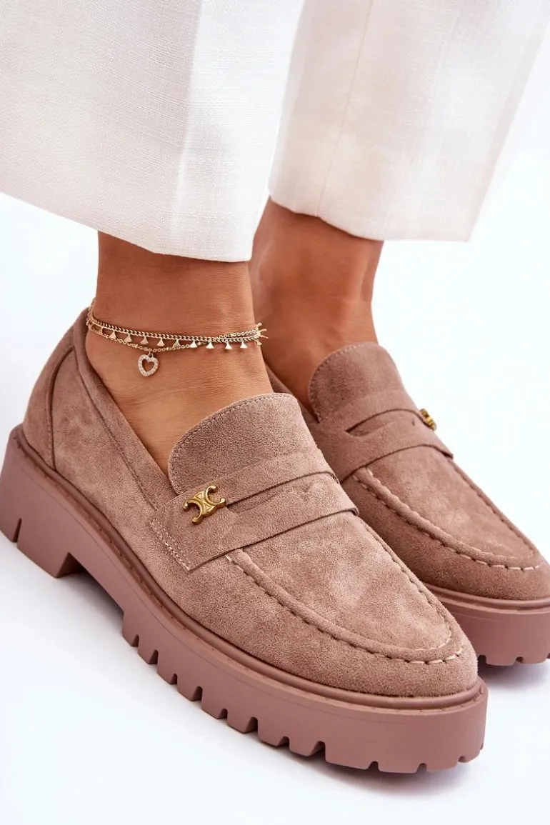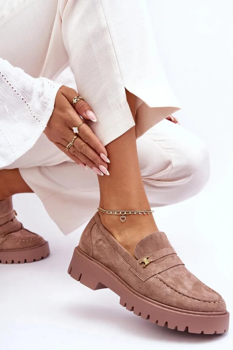 Damskie mokasyny to idealne obuwie na wiele okazji! Osadzono je na platformie i płaskim obcasie. Buty te posiadają delikatnie usztywniany zapiętek oraz wkładkę z eko skóry. Pasku z przodu posiada wycięcie oraz delikatną ozdobę. Ten model z pewnością przypadnie Ci do gustu! Przy wyborze rozmiaru prosimy sugerować się tabelą rozmiarów.