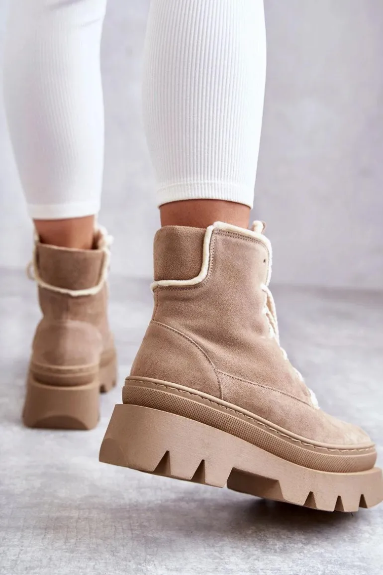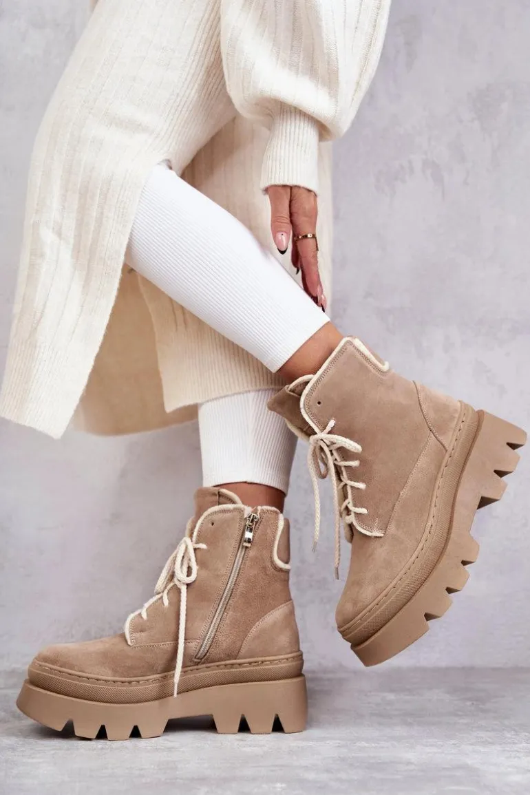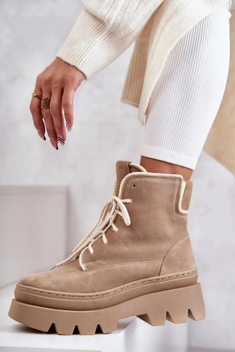Botki damskie o klasycznym fasonie świetnie sprawdzą się na jesienne, chłodne dni. Posiadają wewnątrz ocieplenie w postaci koca obuwniczego. Osadzone na płaskim, stabilnym obcasie ze żłobieniami. Dodatkowo posiadają usztywniany zapiętek. Model z suwakiem na boku cholewki oraz sznurowaniem. Botki doskonale sprawdzą się w wielu stylizacjach. Przy wyborze rozmiaru prosimy sugerować się tabelą rozmiarów.