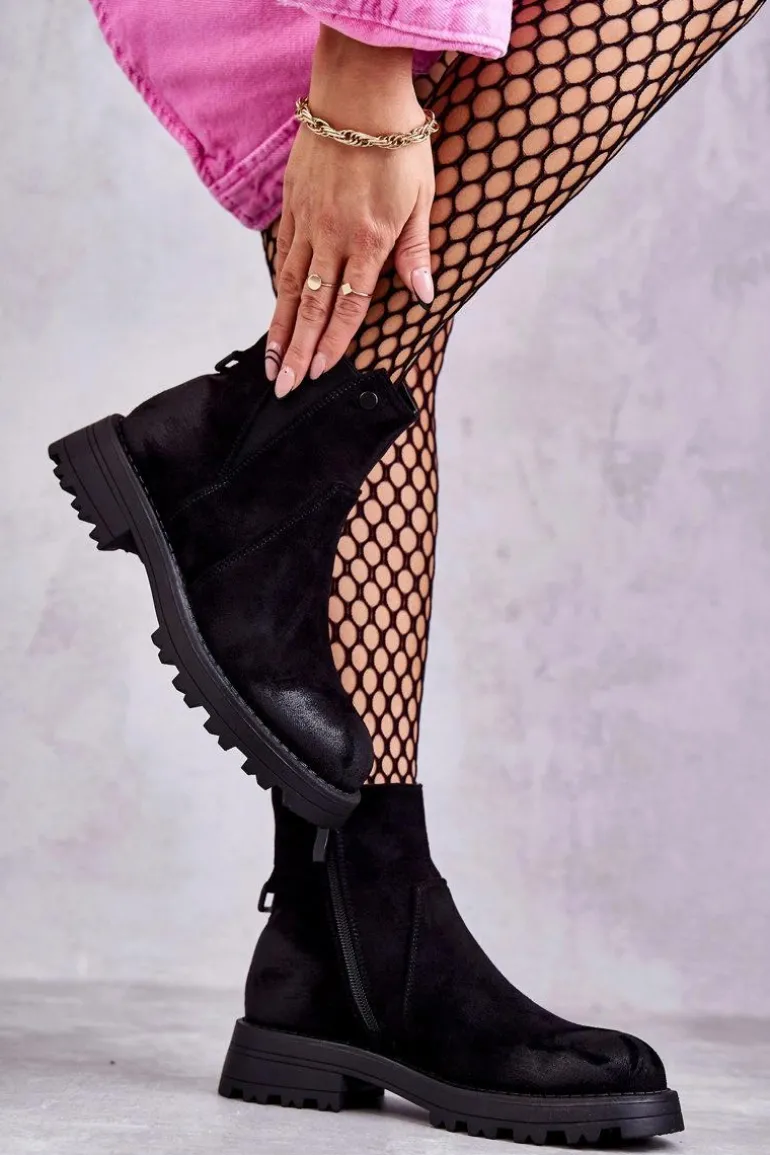Klasyczne botki damskie to HIT tej jesieni! Posiadają z tyłu wszytą ozdobę z napisem. Gumka z boku cholewki pozwoli na odpowiednie dopasowanie do tęgości nogi. Osadzone na płaskim, stabilnym obcasie ze żłobieniami. W środku botki posiadają ocieplenie w postaci koca obuwniczego. Usztywniany zapiętek zapewni stabilizację nogi podczas użytkowania. Przy wyborze rozmiaru prosimy sugerować się tabelą rozmiarów.