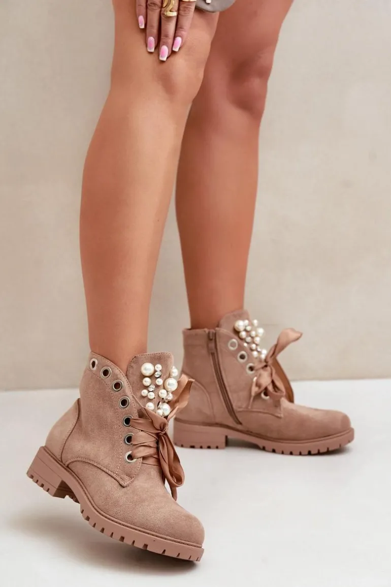 Wyjątkowe botki damskie wykonane z eko skóry. Wnętrze ocieplone pianką pokrytą materiałem. Model wyróżnia się krojem cholewki oraz ozdobami. Przy wyborze rozmiaru prosimy sugerować się tabelą rozmiarów.