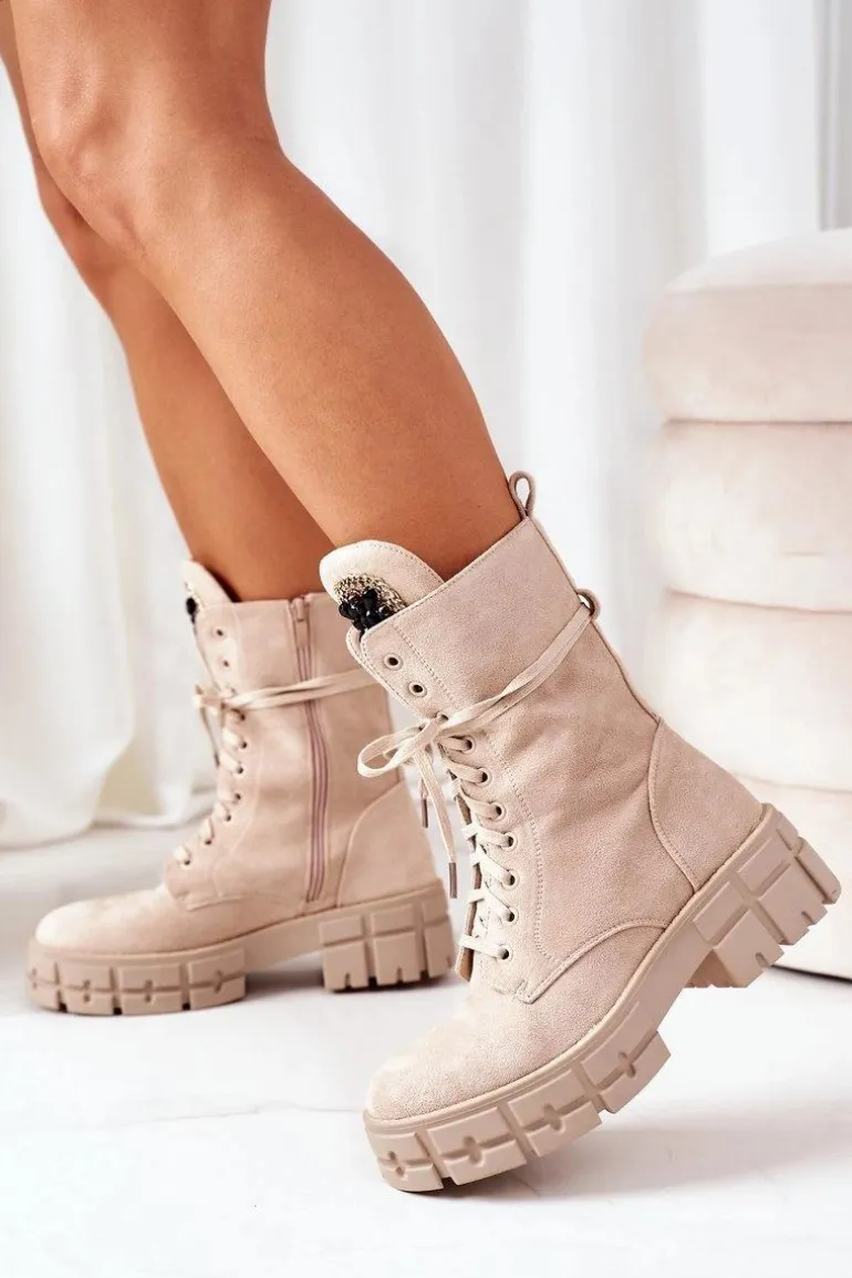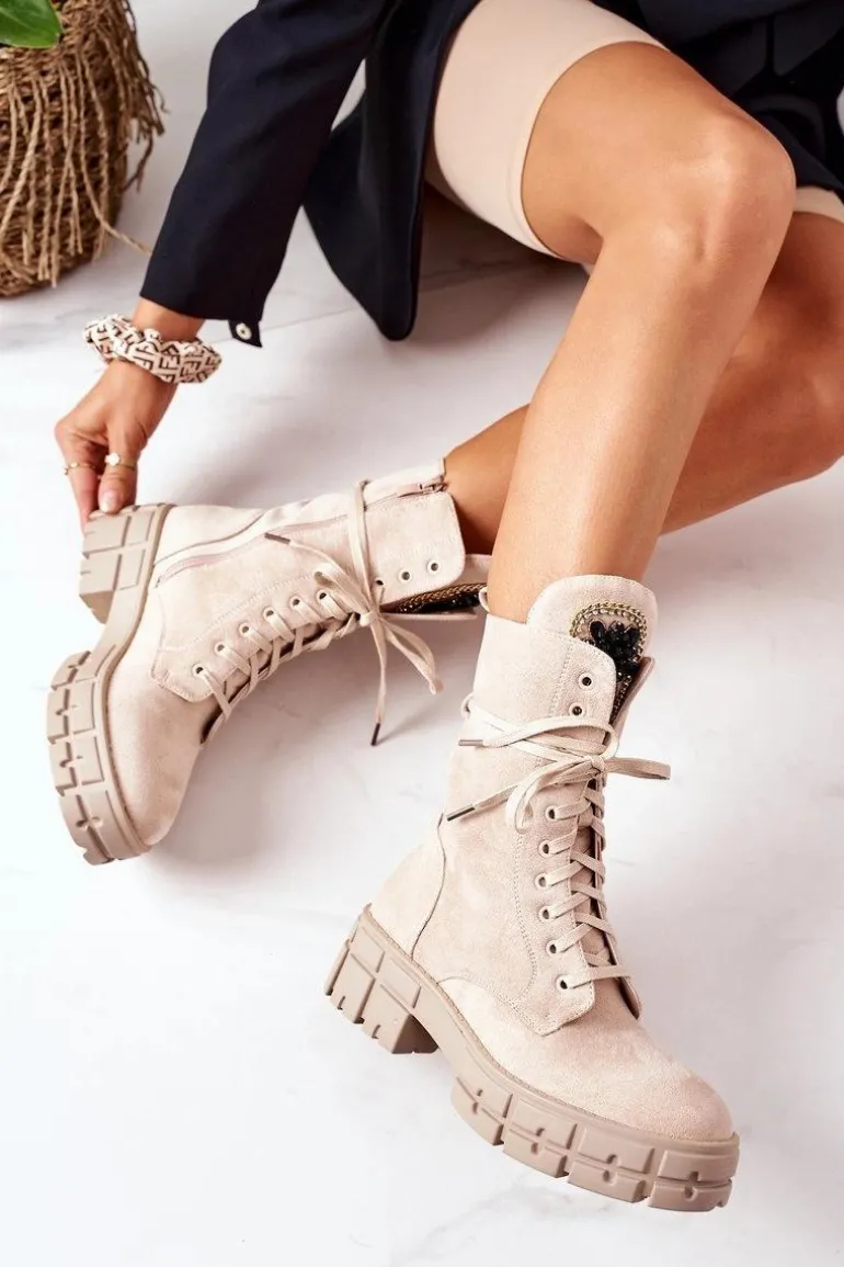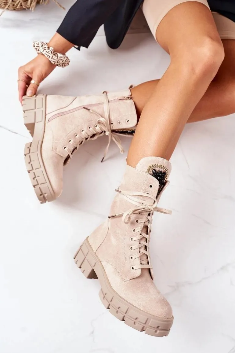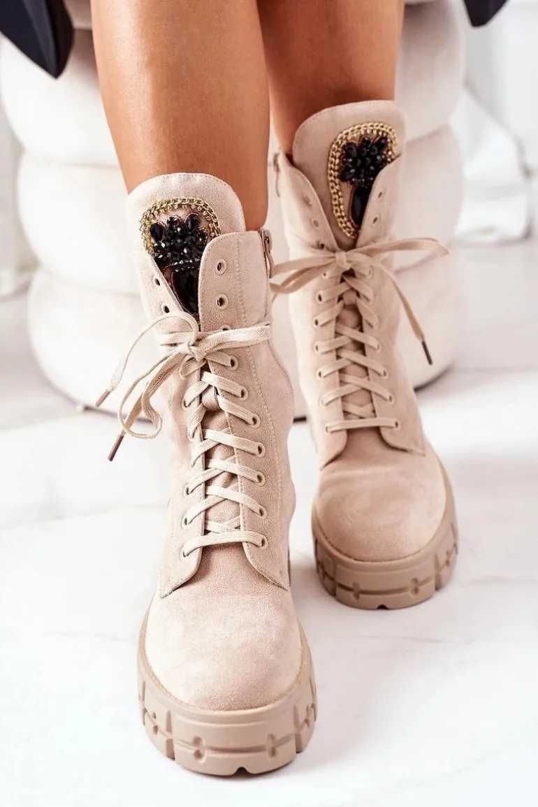 Zamszowe Ocieplane Workery Z Kamieniami Beżowe Hadley