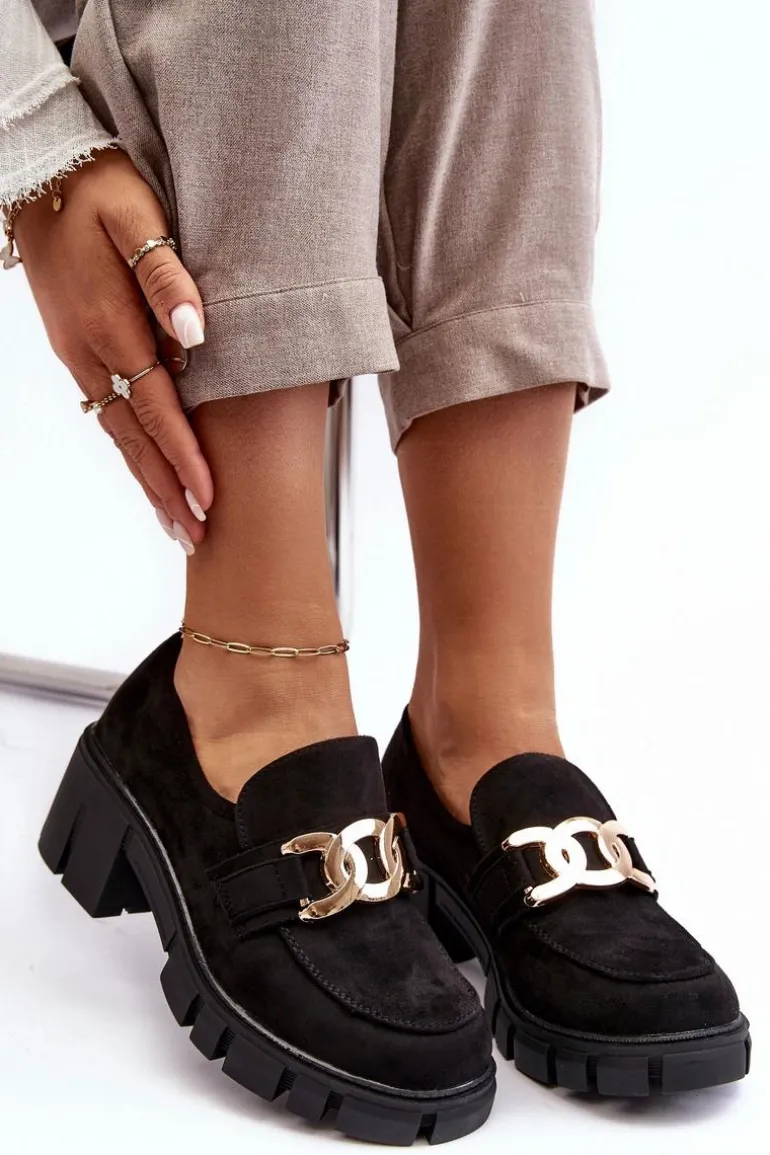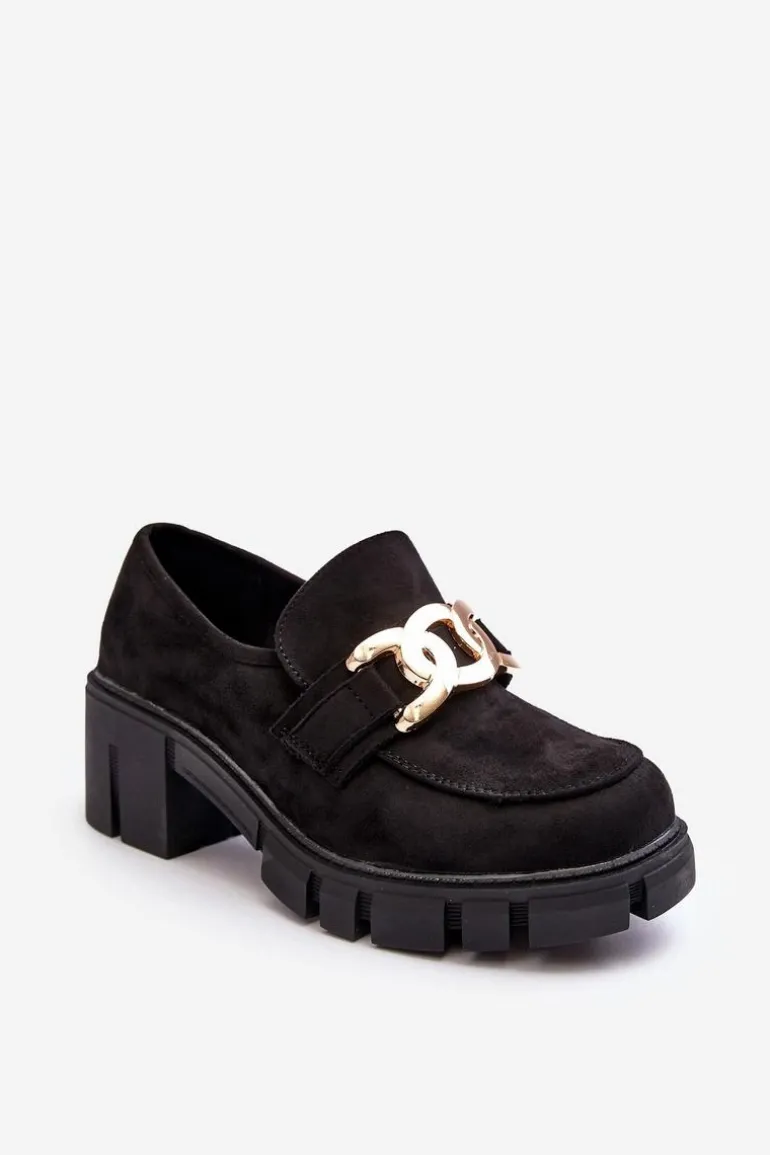 Półbuty damskie wykonane z eko zamszu. Osadzone na masywnym, niskim obcasie. Z przodu złota ozdoba z tworzywa sztucznego. Noski zaokrąglone. Usztywniony zapiętek. Świetny model do wielu stylizacji! Wygodne, a zarazem modne. Koniecznie musisz je mieć! Przy wyborze rozmiaru prosimy sugerować się tabelą rozmiarów.