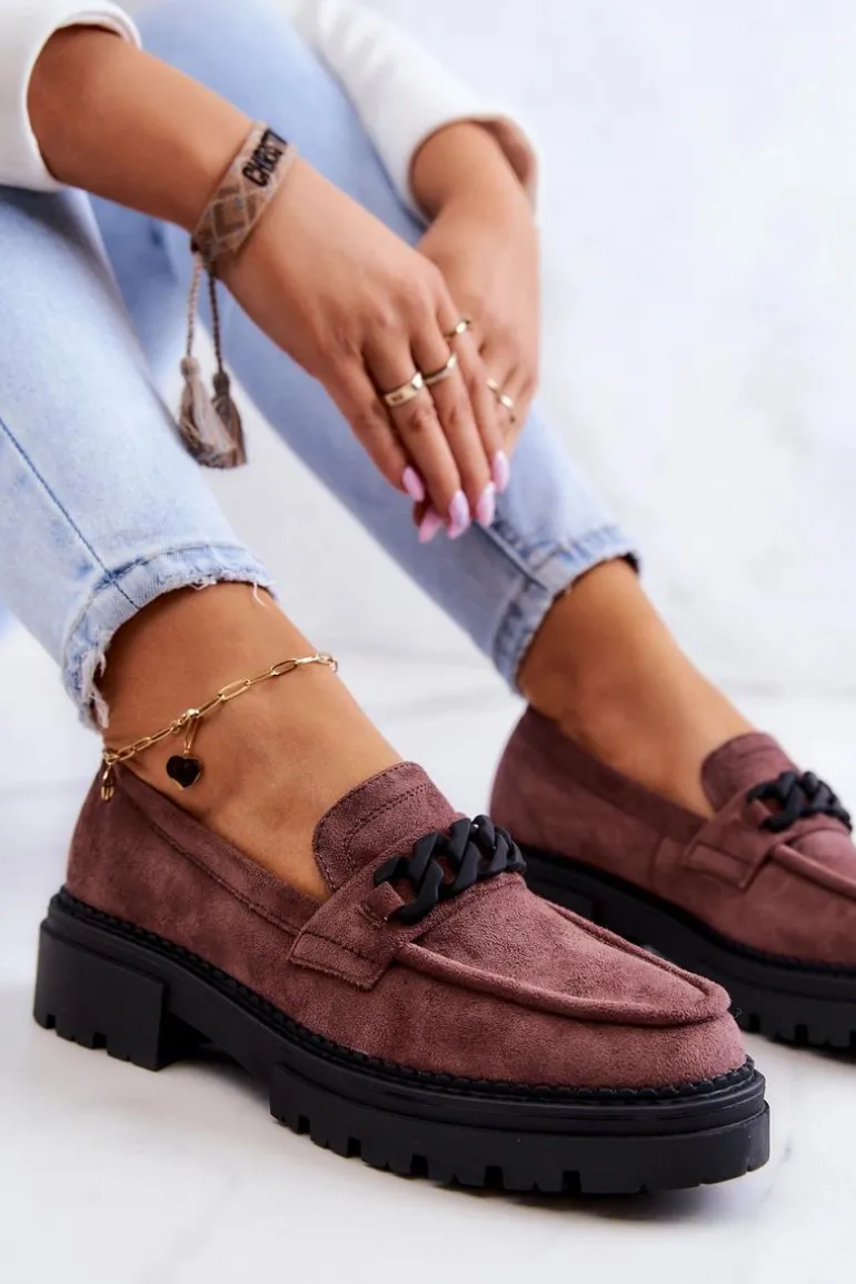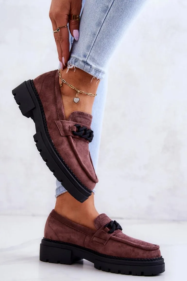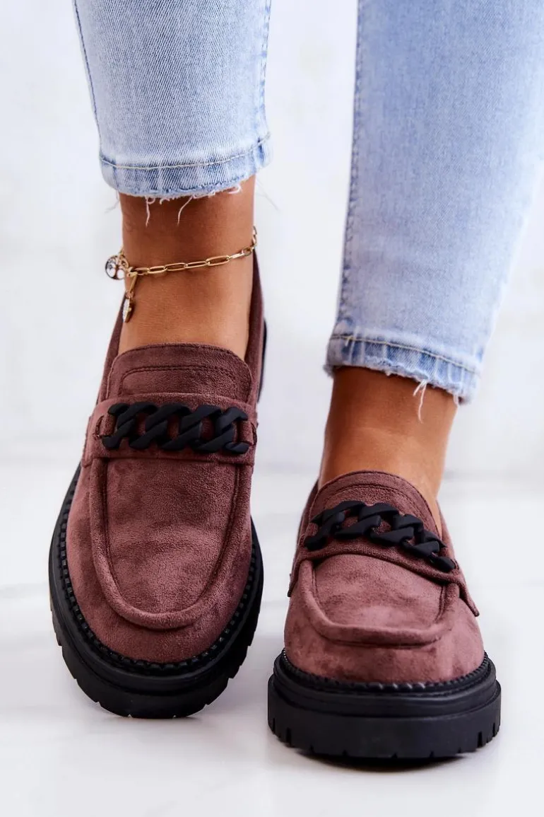 Klasyczne półbuty w stylu przepięknych loaferów marki Laura Fiore! Buty zostały wykonane z wysokiej jakości zamszowej eko skóry. Charakterystyczne zdobienie w postaci łańcucha sprawi, że stworzymy z nimi wiele wspaniałych stylizacji. Posiadają wysoką podeszwę oraz obcas, który uniesie naszą sylwetkę. Miękka wykonana z naturalnej skóry wkładka zadba o komfort podczas użytkowania obuwia. Przy wyborze rozmiaru prosimy sugerować się tabelą rozmiarów.