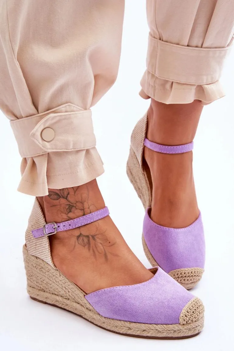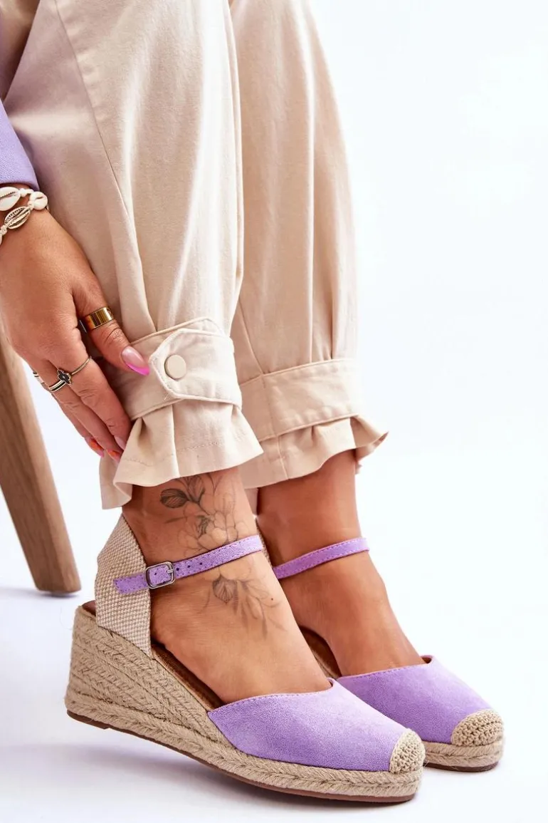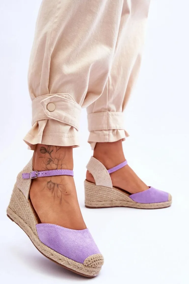 Zamszowe Sandałki Espadryle Na Koturnie Fioletowe Cammer
