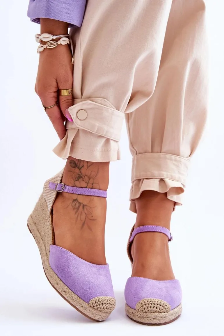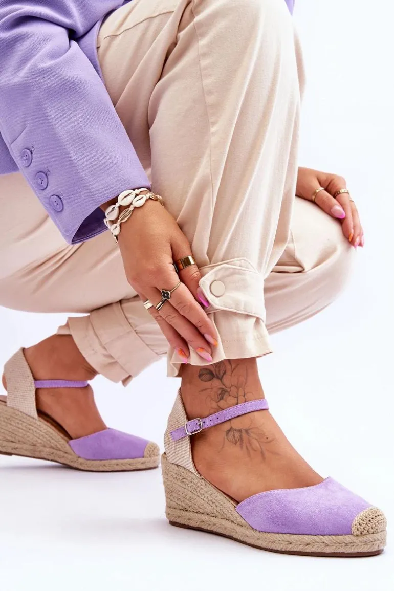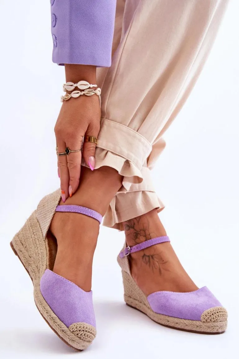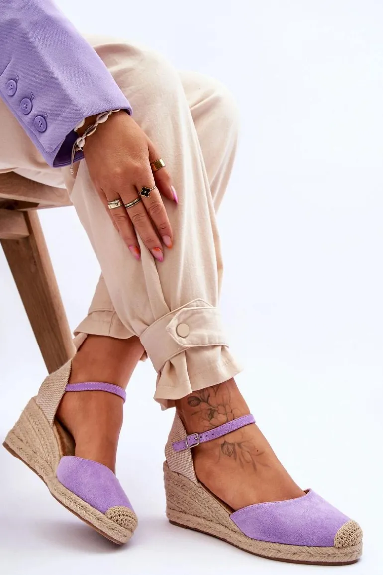 Zamszowe Sandałki Espadryle Na Koturnie Fioletowe Cammer