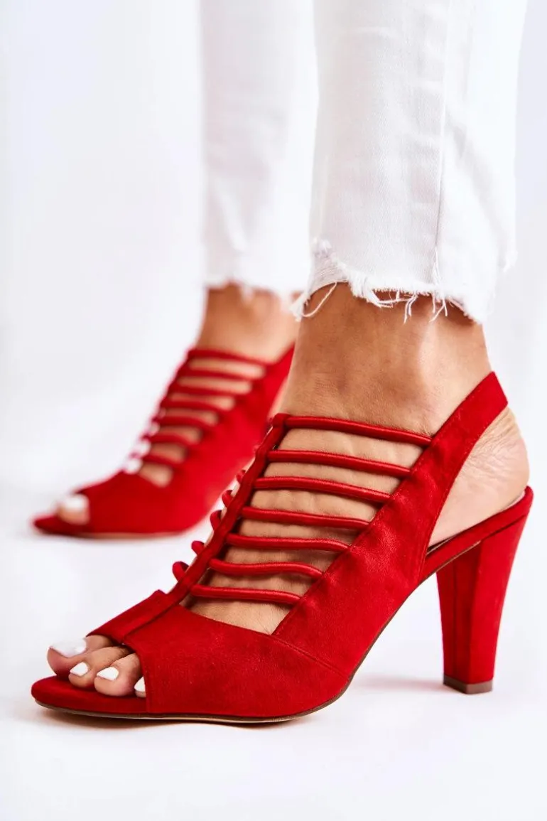 Modne sandały na obcasie w postaci cienkiego słupka. Wsuwane z dodatkową gumką wszytą na pasku. Dodatkowo z przodu także znajdują się gumki. Wykonane z eko zamszu. Nosek odkryty, zaokrąglony. Wkładka wykonana z naturalnej skóry. Jest bardzo wygodna w użytkowaniu nawet przez cały dzień. Koniecznie powinnaś mieć ten model w swojej szafie! Jest idealny na upalne dni! Przy wyborze rozmiaru prosimy kierować tabelą rozmiarów.