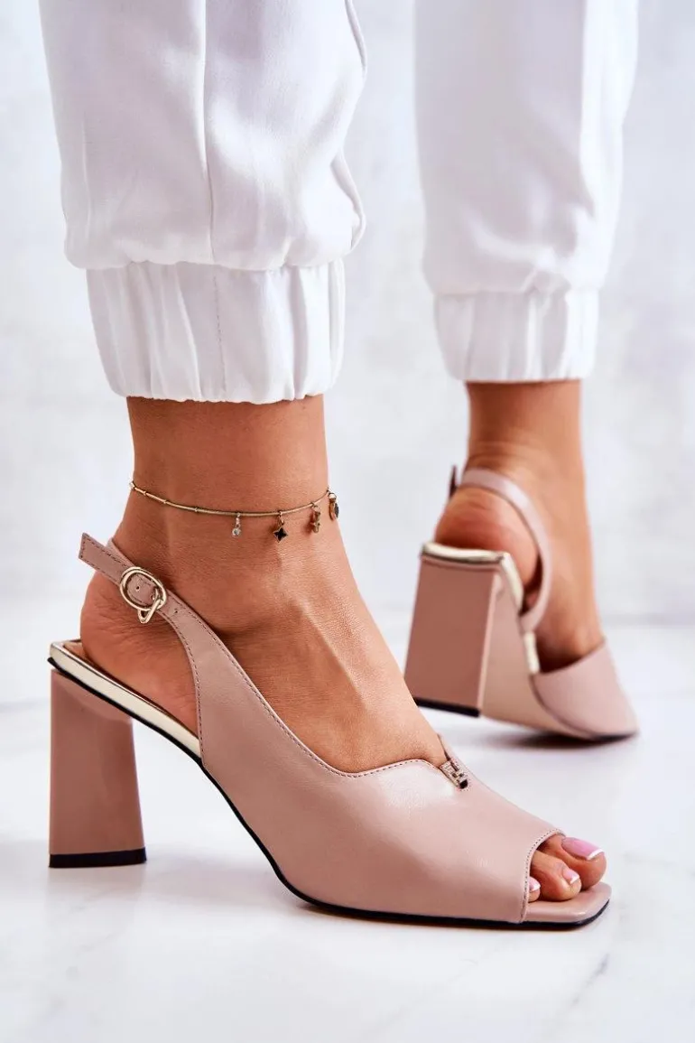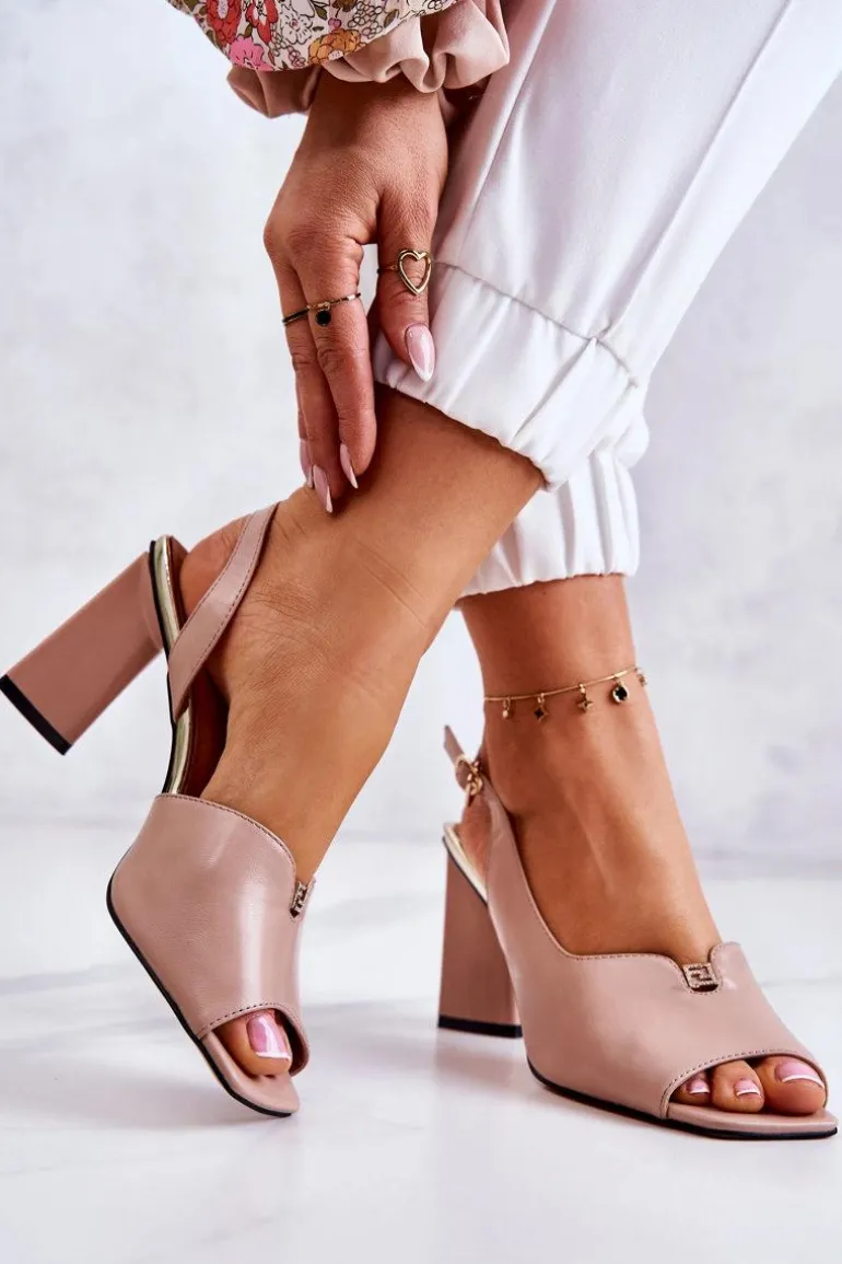 Zamszowe Sandałki Na Słupku Beżowe Fiorine