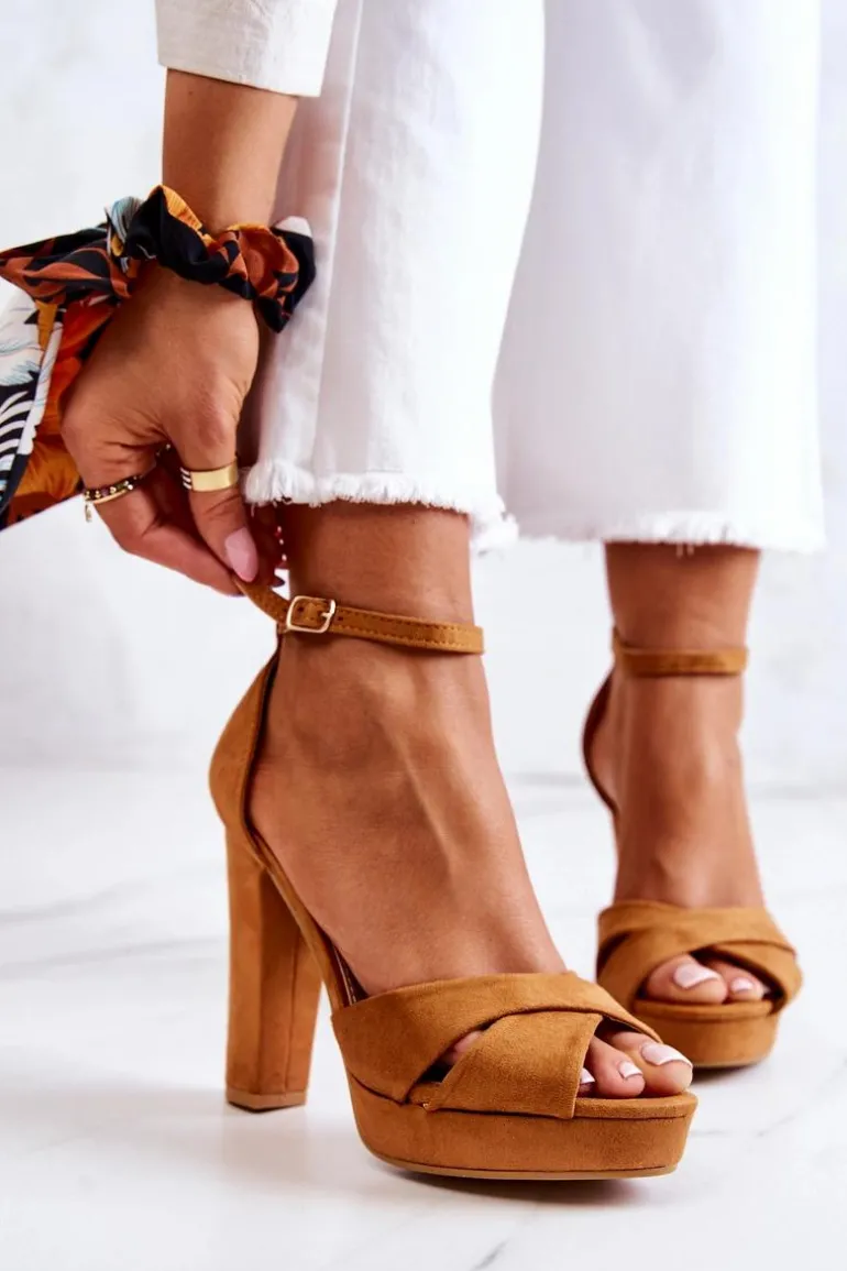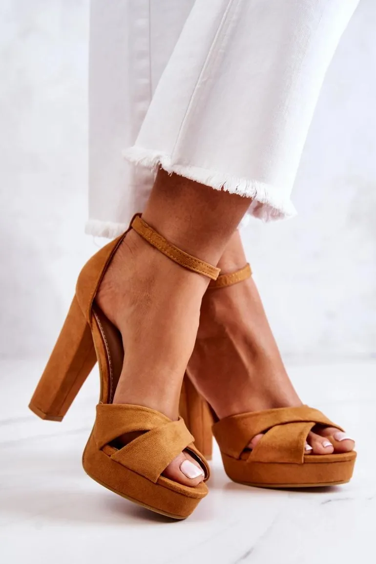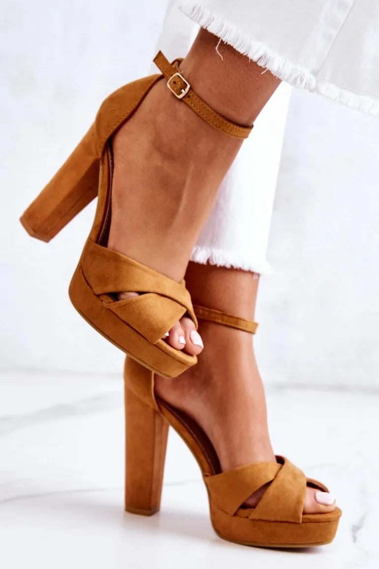 Zamszowe Sandałki Na Słupku Camel Lanelle
