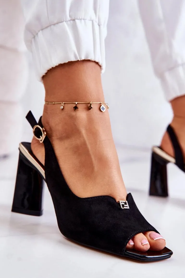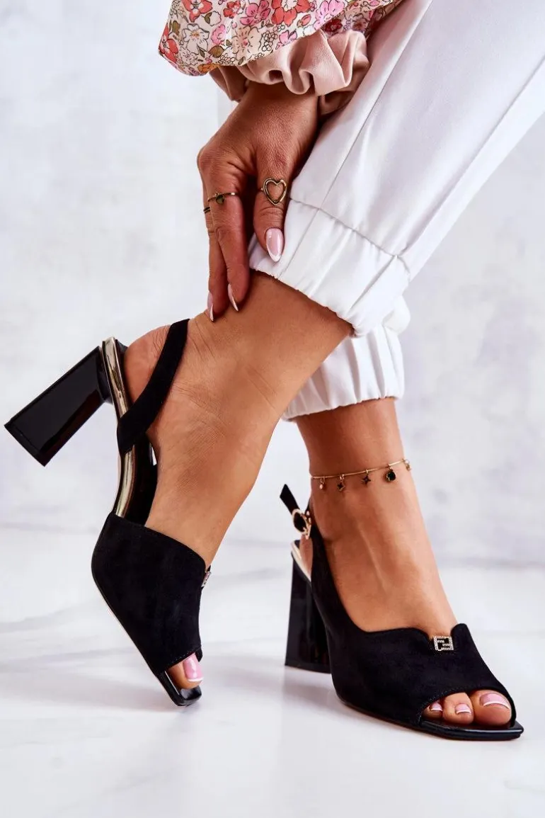 Zamszowe Sandałki Na Słupku Czarne Fiorine