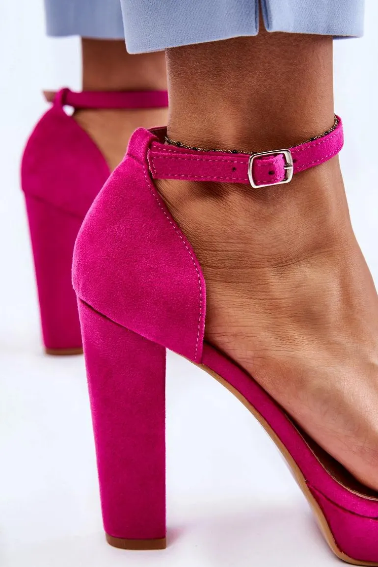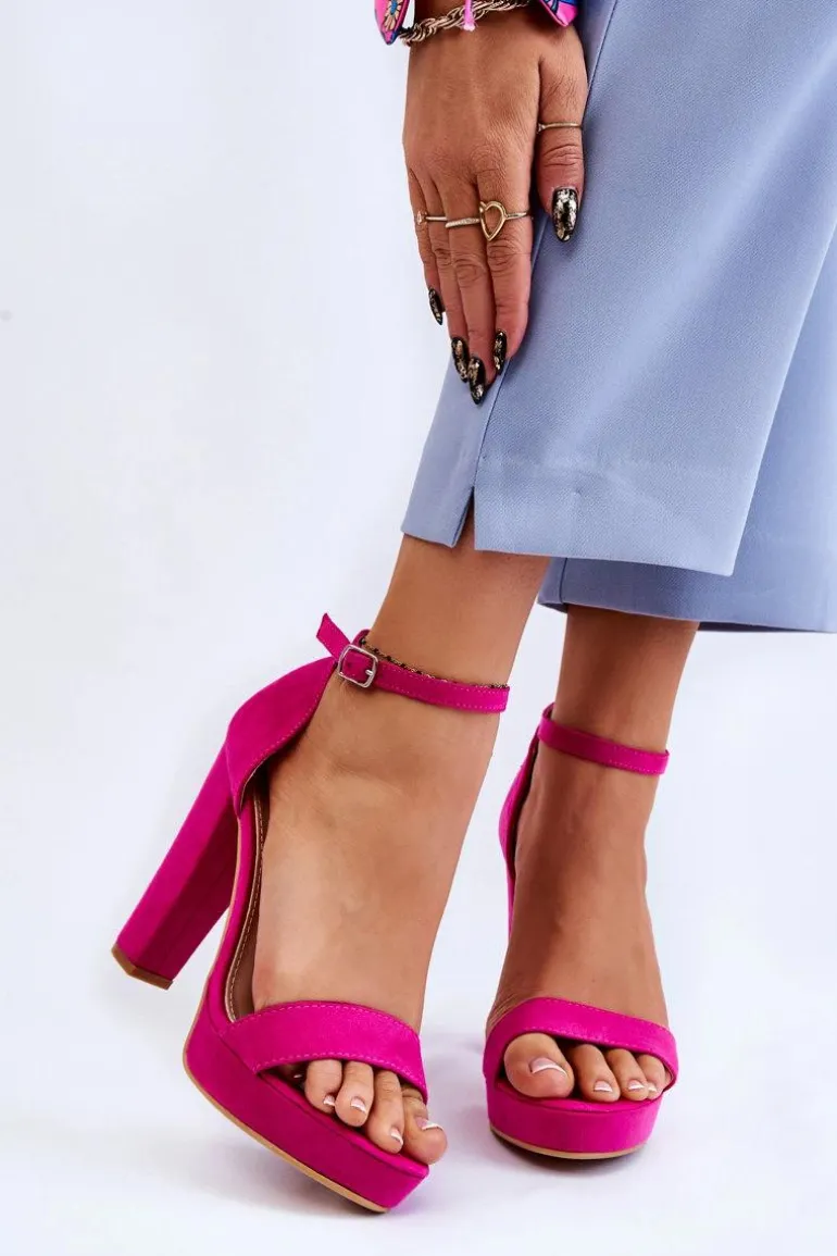 Sandałki osadzone zostały na platformie oraz wysokim obcasie w postaci cienkiego słupka. Wkładka została wykonana z eko skóry. Model zapinany wokół kostki na regulowany pasek ze sprzączką. Świetny model na wiele ważnych uroczystości. Idealne zarówno do sukienek, spódniczek, jak i spodni. Przy wyborze rozmiaru prosimy kierować tabelą rozmiarów.