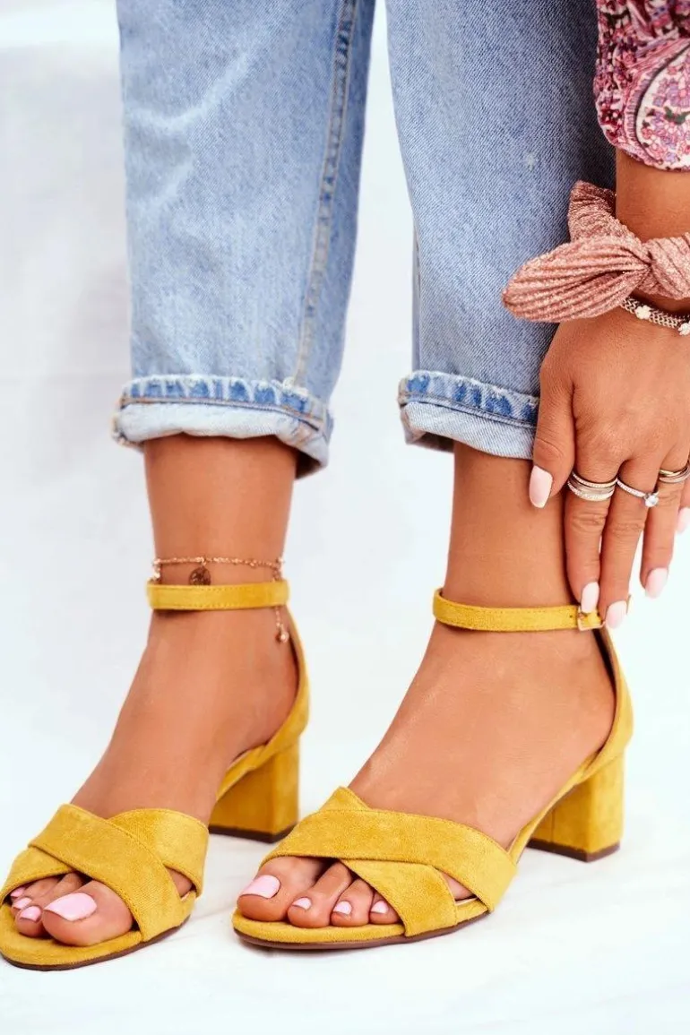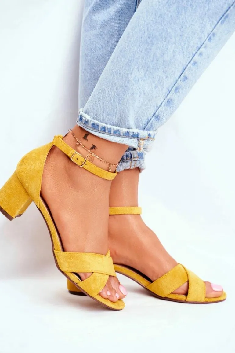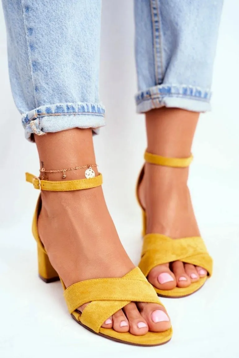 Zamszowe Sandałki na Słupku Żółte Nela