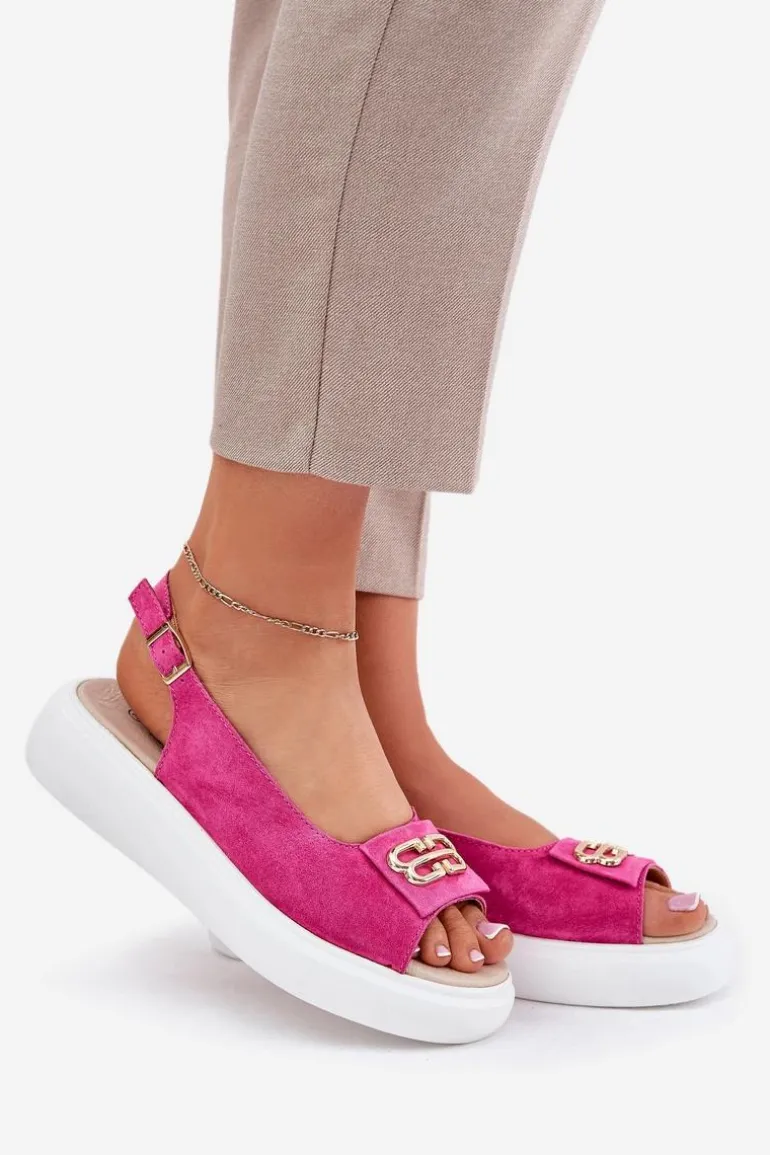 Damskie sandały z naturalnego zamszu to elegancka propozycja na letnie dni. Z przodu sandałów znajduje się subtelny złoty detal, który dodaje im wyjątkowego uroku i elegancji. Osadzone na platformie, zapewniają stabilność i komfort przez cały dzień. Skórzana wkładka gwarantuje wygodę, sprawiając, że te sandały będą doskonałym uzupełnieniem zarówno codziennych, jak i bardziej eleganckich stylizacji. Idealne na letnie wyjścia i specjalne okazje. Przy wyborze rozmiaru prosimy kierować się tabelą rozmiarów.