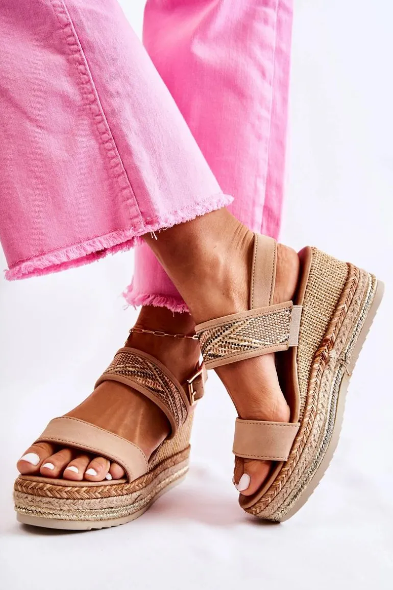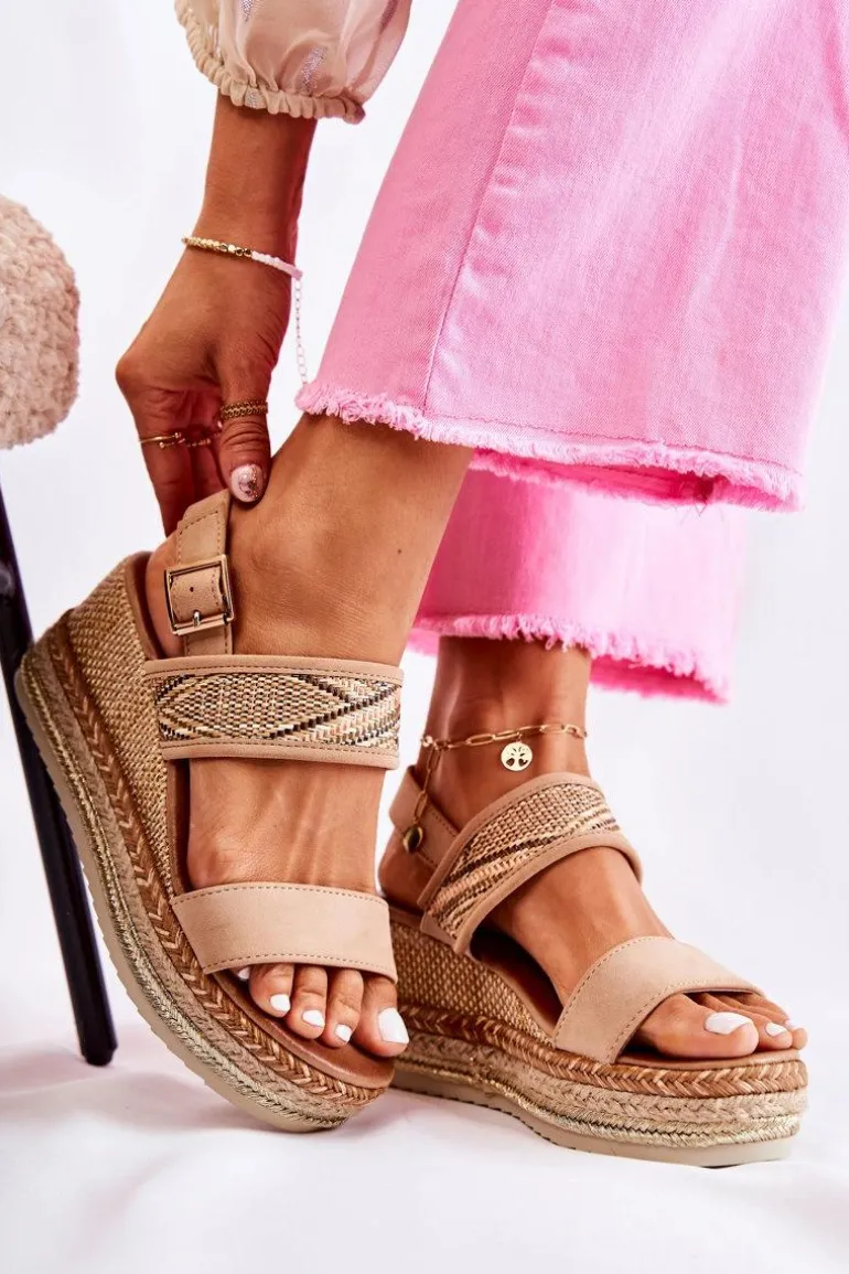 Sandały osadzone na platformie oraz koturnie. Zapinane na sprzączkę umiejscowioną na pasku przy kostce. Koturn jest zdobiony trzema plecionymi paskami w różnych kolorach. Podeszwa jest antypoślizgowa. Sandały są wykonane z zamszowej eko skóry oraz materiału tekstylnego. Buty będą idealne do każdej letniej stylizacji. Eko skórzana wkładka zadba o Twój komfort i wygodę. Przy wyborze rozmiaru prosimy sugerować się tabelą rozmiarów.