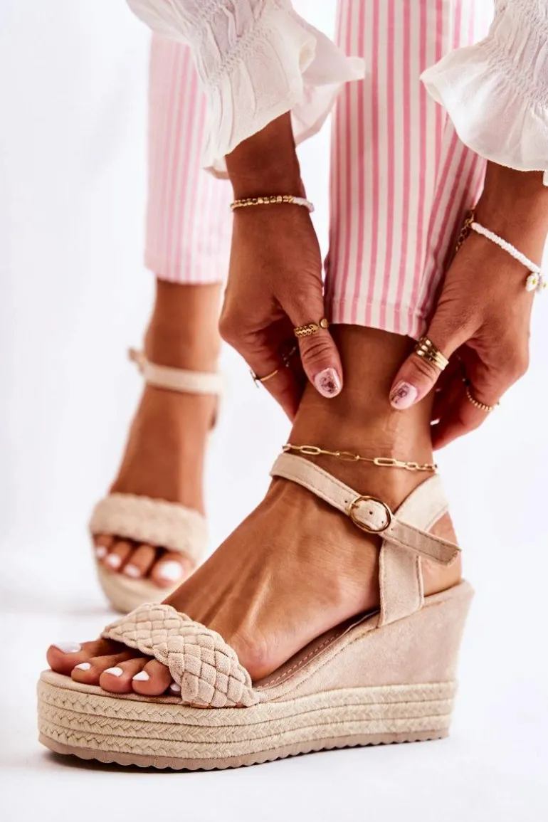 Zamszowe Sandały Na Koturnie Beżowe Gabriela