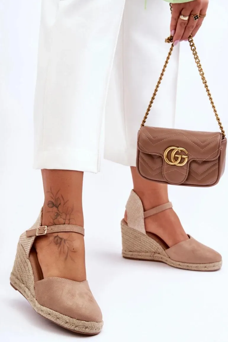 Modne sandały damskie zostały wykonane z połączenia eko zamszu oraz tkaniny. Sandałki te posiadają zapinanie w postaci regulowanego paska. Koturn i platforma zostały ozdobione jutową plecionką. Podeszwa w tych butach jest gumowa i antypoślizgowa. Miękka wkładka zadba o Twój komfort i wygodę. Przy wyborze rozmiaru prosimy sugerować się tabelą rozmiarów.